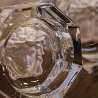 Shop Decor presenta el cuenco Medusa Crystal Lumiere con pie. Medusa Crystal Lumiere es la nueva y elegante colección de accesorios para el hogar y la mesa de Versace Home. Decorados con la icónica e inconfundible cabeza de Medusa y hechos de vidrio, estos accesorios son el elemento ideal para dar un toque misterioso y único a cada mesa y habitación. Haz que cada habitación sea especial con el arte inconfundible de Versace Home.