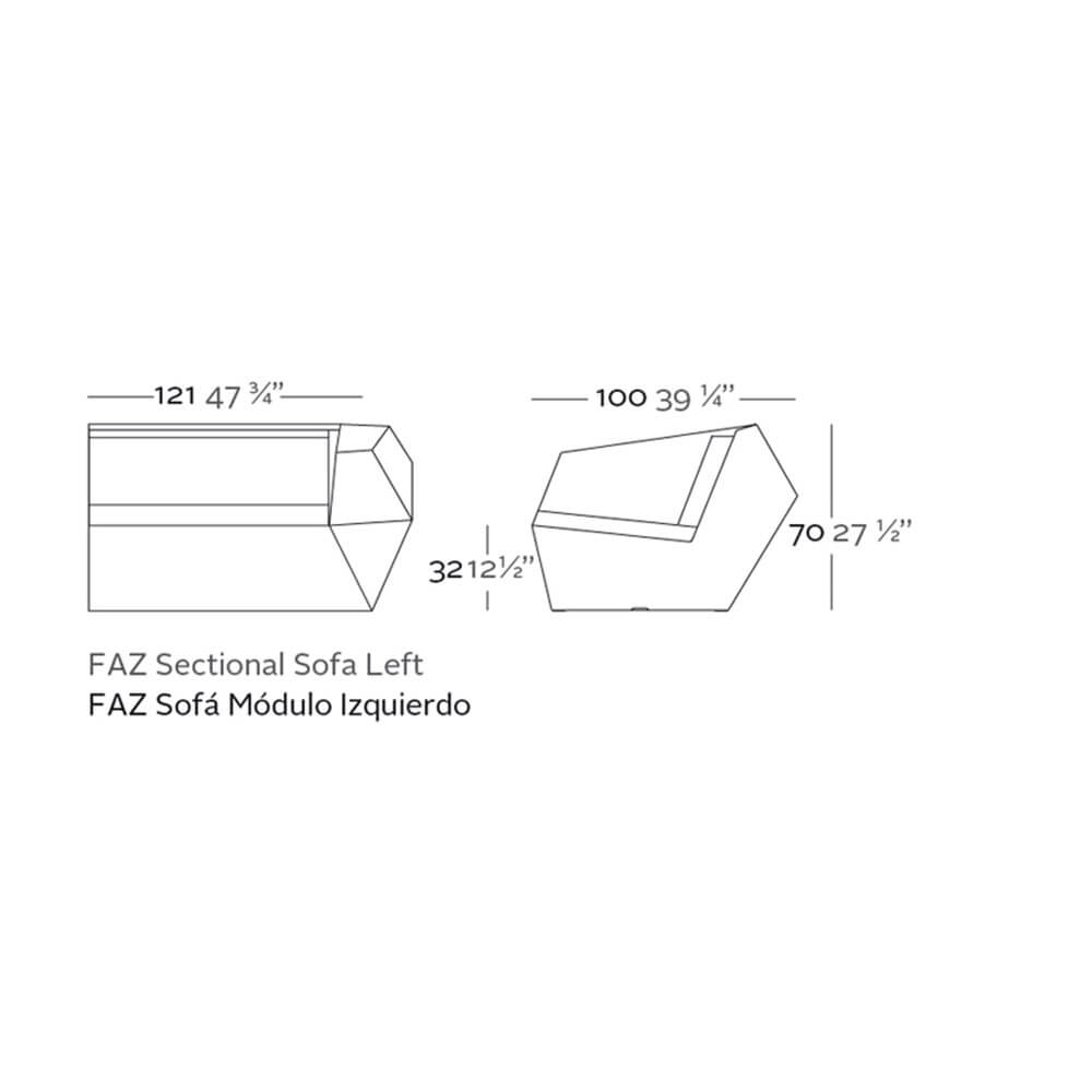 Ramon Esteve acepta la invitación de Vondom para crear una de las colecciones más importantes de la marca, FAZ, un homenaje al diseño puro y a un estilo minimalista que puede amueblar con sofisticación. La colección FAZ está compuesta por varios elementos decorativos como sofá, sillas, camas de jardín y jarrones, todos compartiendo el mismo estilo caracterizado por formas geométricas, cuadradas y definidas. Vondom trabaja con polipropileno mate en relieve y obtiene elementos de mobiliario que son verdaderas obras de arte, elementos que pueden transformar tus espacios interiores y exteriores en un reino independiente: el mundo FAZ, donde las formas y colores dan vida a juegos de luces y sombras y los convierten en los verdaderos protagonistas. Shop Decor propone el original FAZ SOFA, el sofá de exterior, provisto de cojín con funda removible en tela náutica. Los módulos de la colección FAZ SOFA pueden combinarse y están específicamente concebidos para crear un solo sofá de la longitud y forma deseadas. Aquí se propone FAZ SOFA IZQUIERDO, el sofá de esquina izquierda que parece estar tallado directamente de un mineral, transformándolo en un verdadero trono con facetado original. Combina varios elementos de mobiliario FAZ para transformar tus ambientes en un mundo alternativo y onírico de otro planeta.