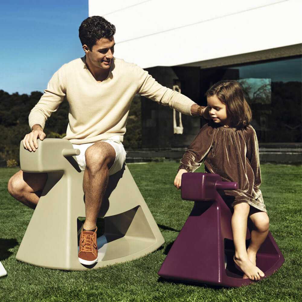 Un homenaje a España y al mundo de Vondom por Eero Aarnio: ROSINANTE es el caballo mecedor colorido y divertido, una mezcla perfecta de diseño y diversión. ROSINANTE es el nombre del caballo de don Quijote, el protagonista principal de la clásica novela "El ingenioso hidalgo don Quijote de la Mancha", la novela principal de la literatura española. Al reinterpretar la forma del clásico caballo mecedor, Eero Aarnio propone una mecedora moderna y original, una pequeña obra de arte que enriquecerá tus espacios exteriores. ROSINANTE es un juego divertido tanto para adultos como para niños, disponible en dos tamaños para complacer a vaqueros de todas las edades. Gracias a su base ágil, puedes pivotar sobre él o mecerte hacia adelante y hacia atrás. Disponible en blanco, negro, crudo, bronce y rojo, ROSINANTE está hecho de polipropileno mate y grabado, resistente a las inclemencias del tiempo y fácil de limpiar. Galopa hacia el diseño y la diversión con ROSINANTE.