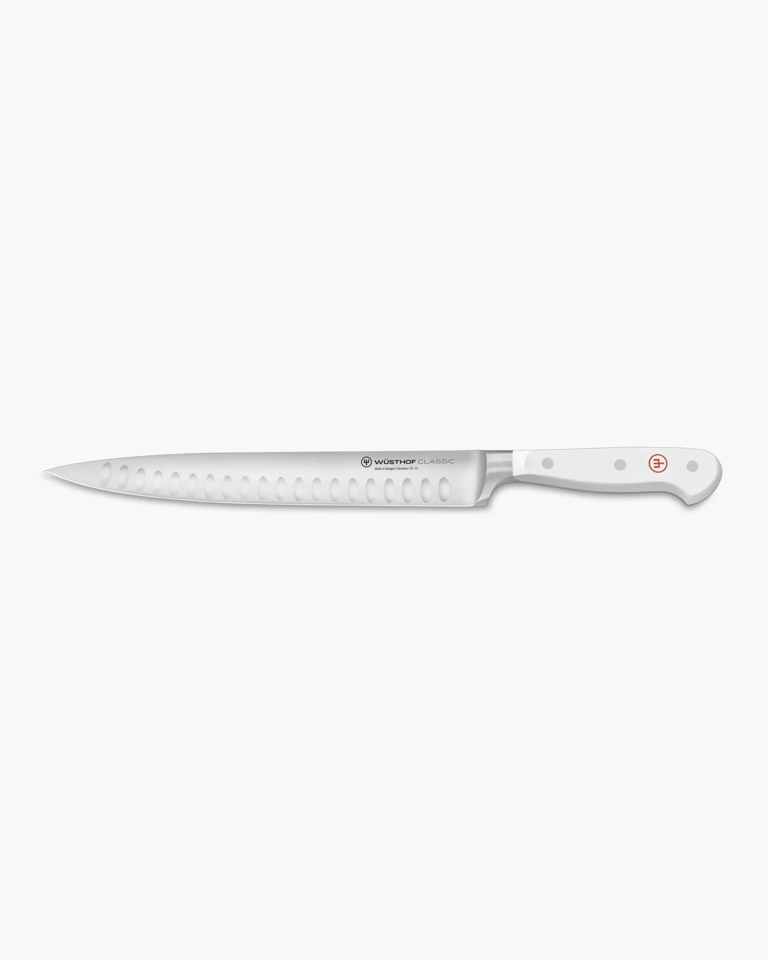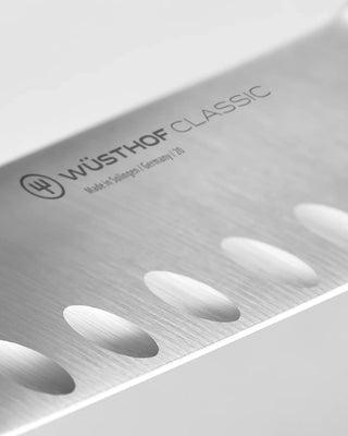 El cuchillo de trinchar Wüsthof Classic con filo hueco es una obra maestra de control, nitidez y elegancia. Diseñado para deslizarse sin esfuerzo a través de asados, jamones, carnes e incluso alimentos delicados crudos o cocidos, este cuchillo Wüsthof garantiza porciones consistentemente finas y uniformes cada vez. Un compañero confiable para banquetes festivos y cenas diarias, el cuchillo de trinchar Wüsthof Classic con filo hueco hace que cada corte cuente.