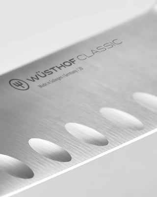 Forjado en Alemania a partir de una sola pieza de acero de alto carbono, este cuchillo de trinchar presenta un filo afilado como una navaja y hendiduras huecas a lo largo de la hoja. Estos cortes ondulados crean bolsas de aire que evitan que las rebanadas suaves o delgadas se peguen, permitiendo un servicio sin esfuerzo y una presentación de nivel profesional. Diseñado por Wüsthof, es una pieza de exhibición que rinde con una consistencia inquebrantable entre tus utensilios de mesa y cocina.