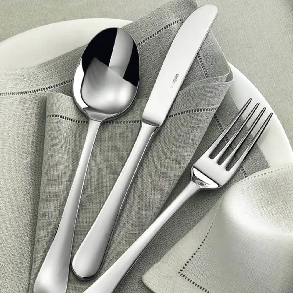 Développés par Sambonet Design, les couverts suivent des principes ergonomiques rigoureusement contrôlés qui garantissent le confort lors de repas prolongés. Les dents des fourchettes restent parfaitement alignées pour une manipulation précise des aliments, les cuillères présentent une courbure douce qui favorise une dégustation équilibrée, et les lames des couteaux assurent une transition fluide entre la lame et le manche. Ces détails structurels renforcent l’ergonomie des ustensiles tout en préservant leur cohérence visuelle. Dans l’univers des collections de couverts contemporains élégants, le design Symbol démontre comment le minimalisme peut coexister avec la précision technique.