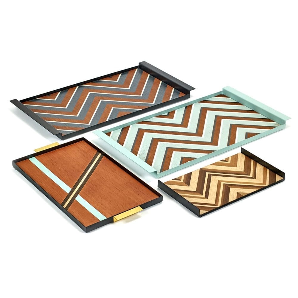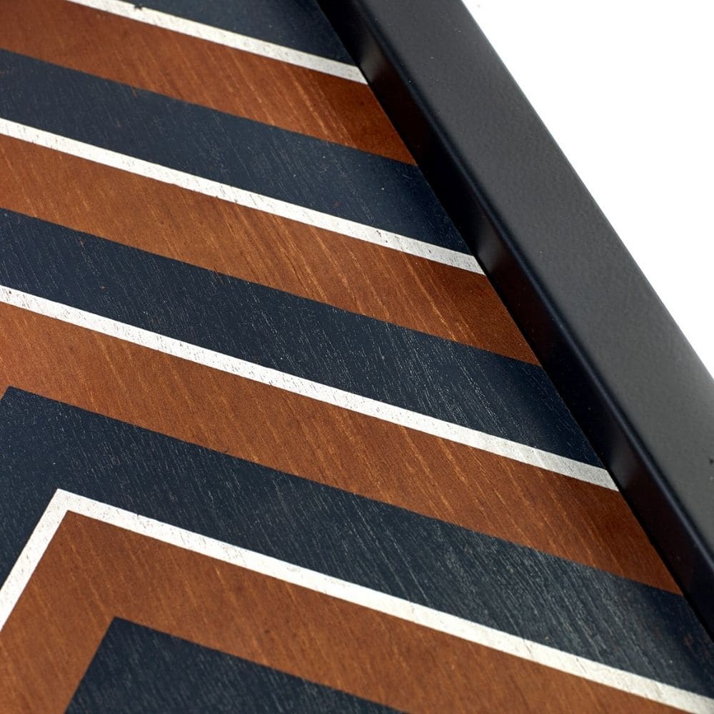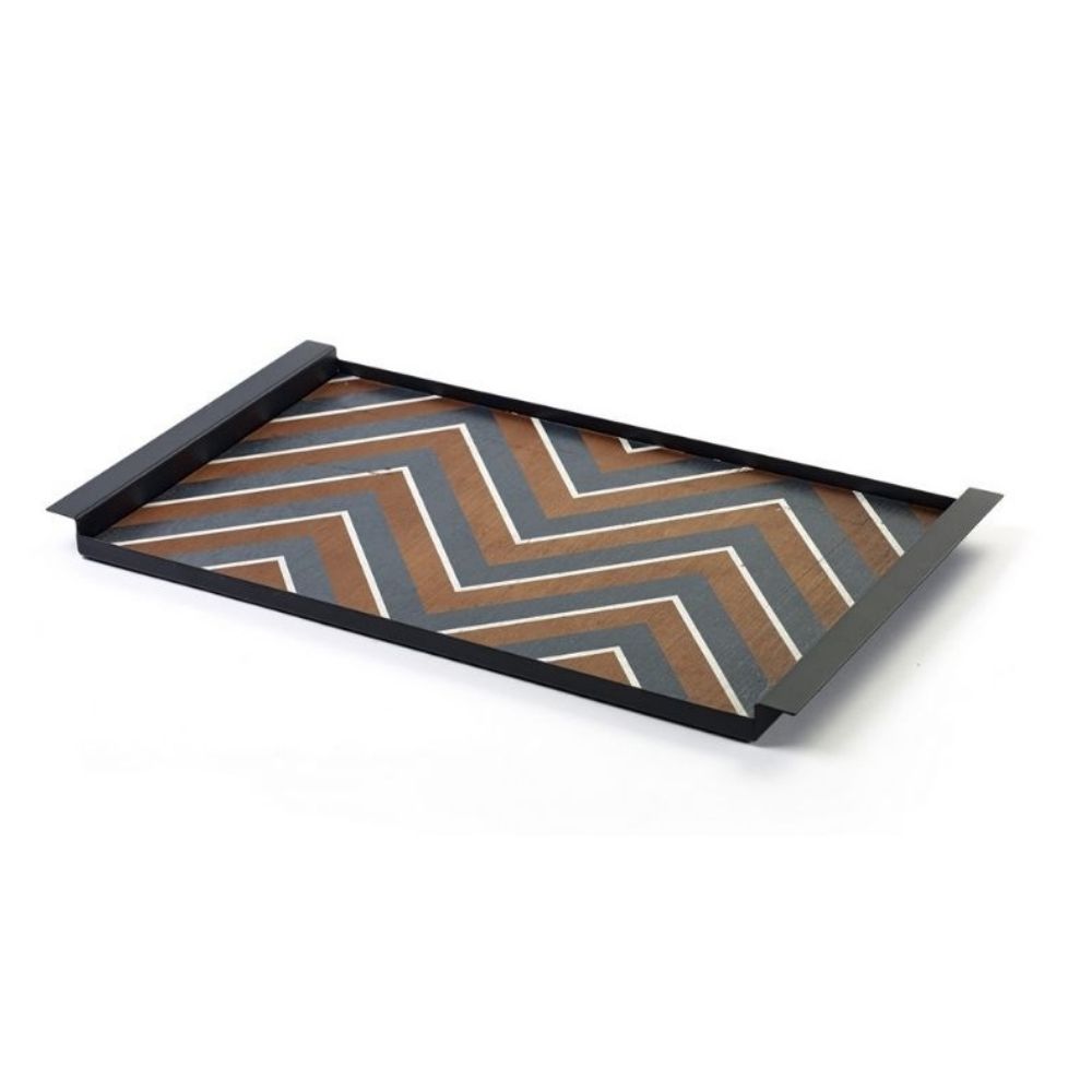 Expertly made from premium wood, this Tray features an elegant black finish accentuated by its signature zigzag pattern. The serax charles tray blends traditional woodworking with a contemporary aesthetic, where linear rhythm meets refined texture. The geometric surface, enhanced by delicate brass details, creates a striking play of light and shadow that captures the eye. Designed as part of Serax | Tableware, it represents modern sophistication grounded in artisanal authenticity.