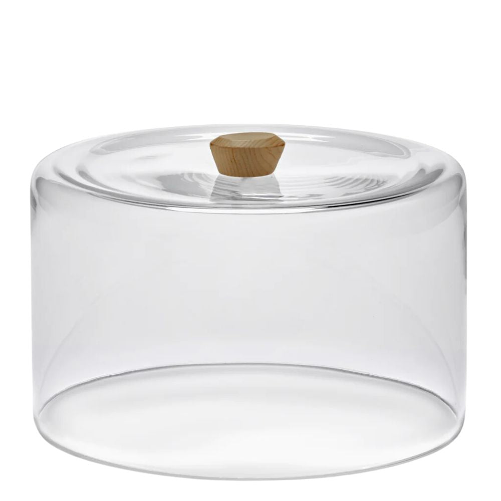 Each dome is mouthblown, a process that ensures individuality and subtle variations in thickness that mark artisanal craft. The knob is turned from ash wood, offered in natural and black finishes that complement the clarity of glass. As indicated, it should be hand washed to maintain transparency and integrity over time. These material choices allow the dome to combine resilience with refinement, proving its adaptability in both domestic and hospitality settings. Its 30.5 cm diameter makes it practical yet expressive, confirming its place as a clear glass cover for cakes among many Serax table products.