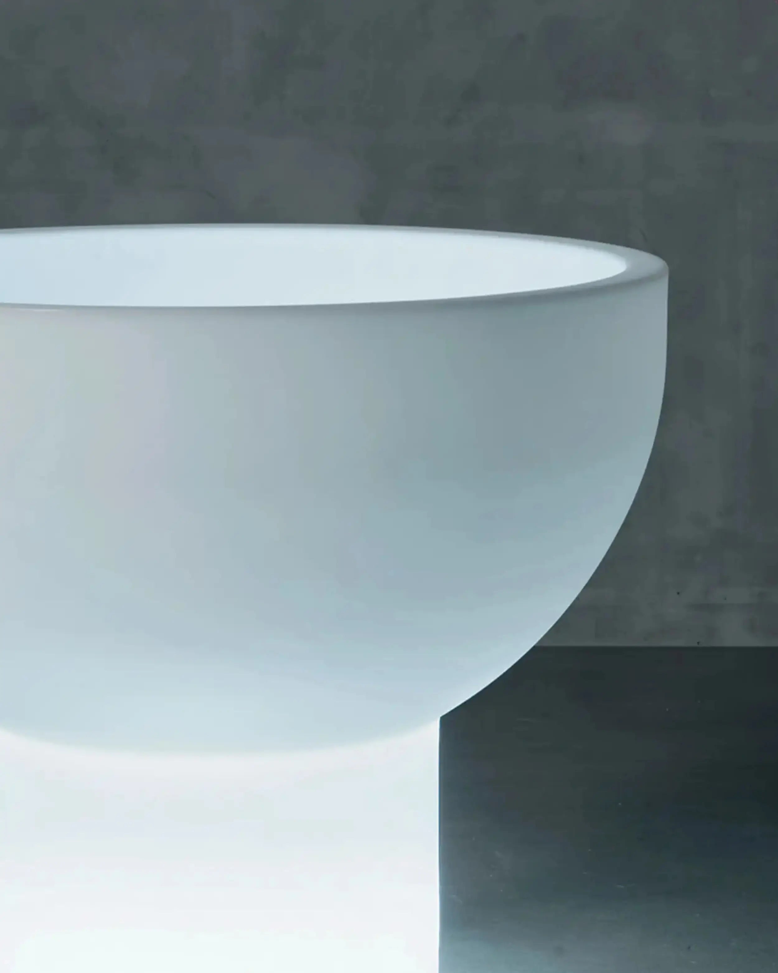 Le Serralunga Primavera planter with light, conçu par Eero Aarnio, réinterprète l'iconique Primavera vase en ajoutant une dimension lumineuse. Cette version intègre une technologie LED discrète, transformant le pot en une sculpture rayonnante qui métamorphose les espaces avec atmosphère et élégance. À la fois fonctionnel et décoratif, il incarne le dialogue entre lumière, nature et design. Parfait pour les hôtels de luxe et les villas modernes, il élève les environnements avec un mélange unique d'art et d'utilité.
