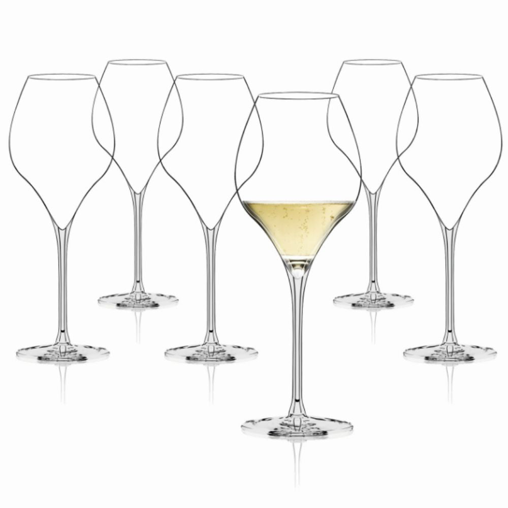 With a reduced capacity of 230 cc, the bowl is engineered to preserve aromatic concentration and enhance definition during tasting. This smaller internal volume limits excessive oxygenation, making the glass particularly suitable for guided evaluations, comparative tastings and structured wine flights. The geometry supports accurate pouring control while maintaining visual harmony on the table. As part of a coherent designer stemware concept, the six-glass set ensures consistency and uniform presentation in professional wine environments.Xtreme crystalline glass for durability and brilliance