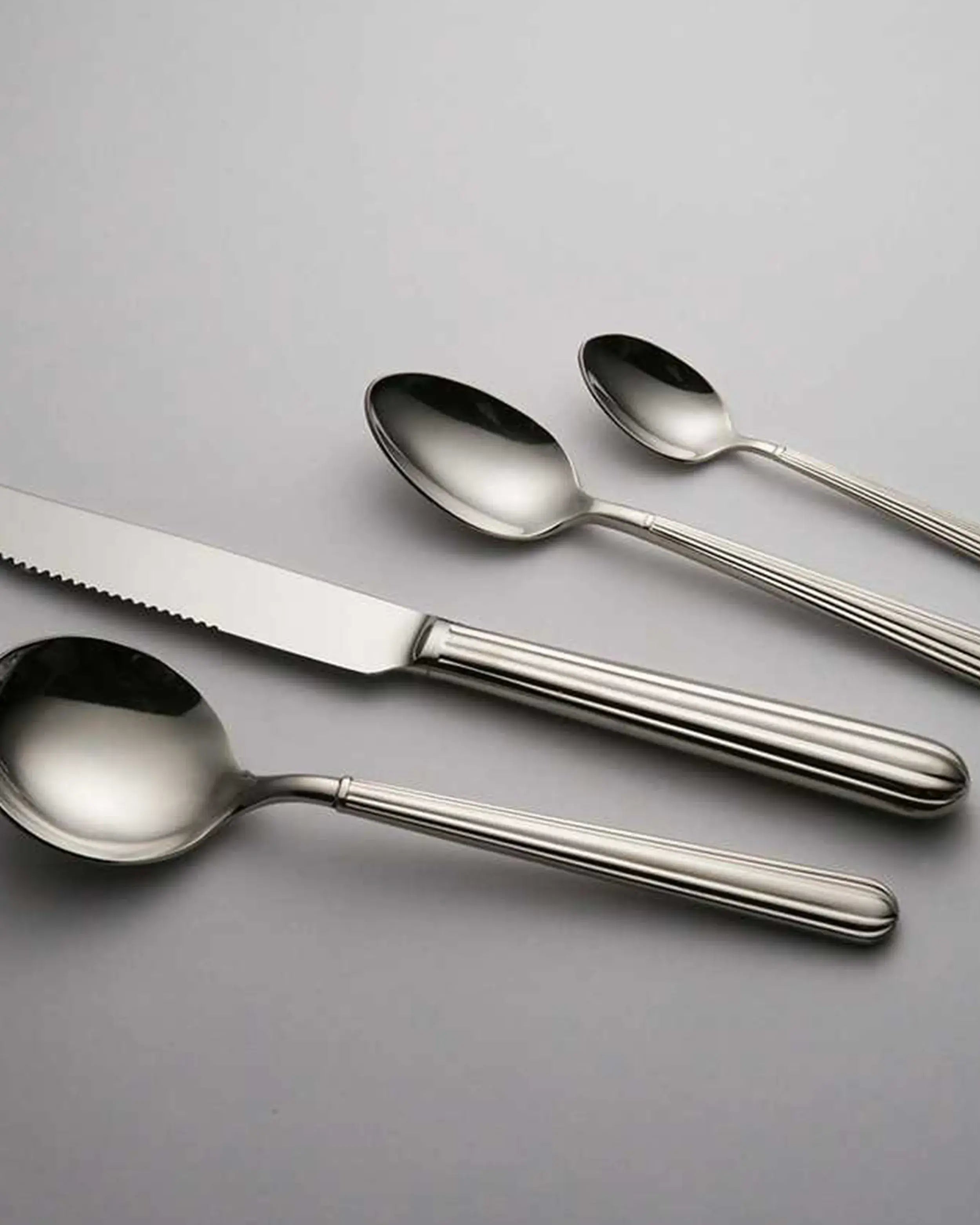 Dans le cadre de la collection exclusive Cutlery & Co collection, cet ensemble de couverts broggi comprend 6 cuillères de table, 6 fourchettes de table, 6 couteaux de table et 6 cuillères à café. Chaque pièce est soigneusement conçue pour l'équilibre et le confort, garantissant une expérience de repas agréable. Sa finition polie reflète la sophistication, en faisant un ajout magnifique à tout table setting.