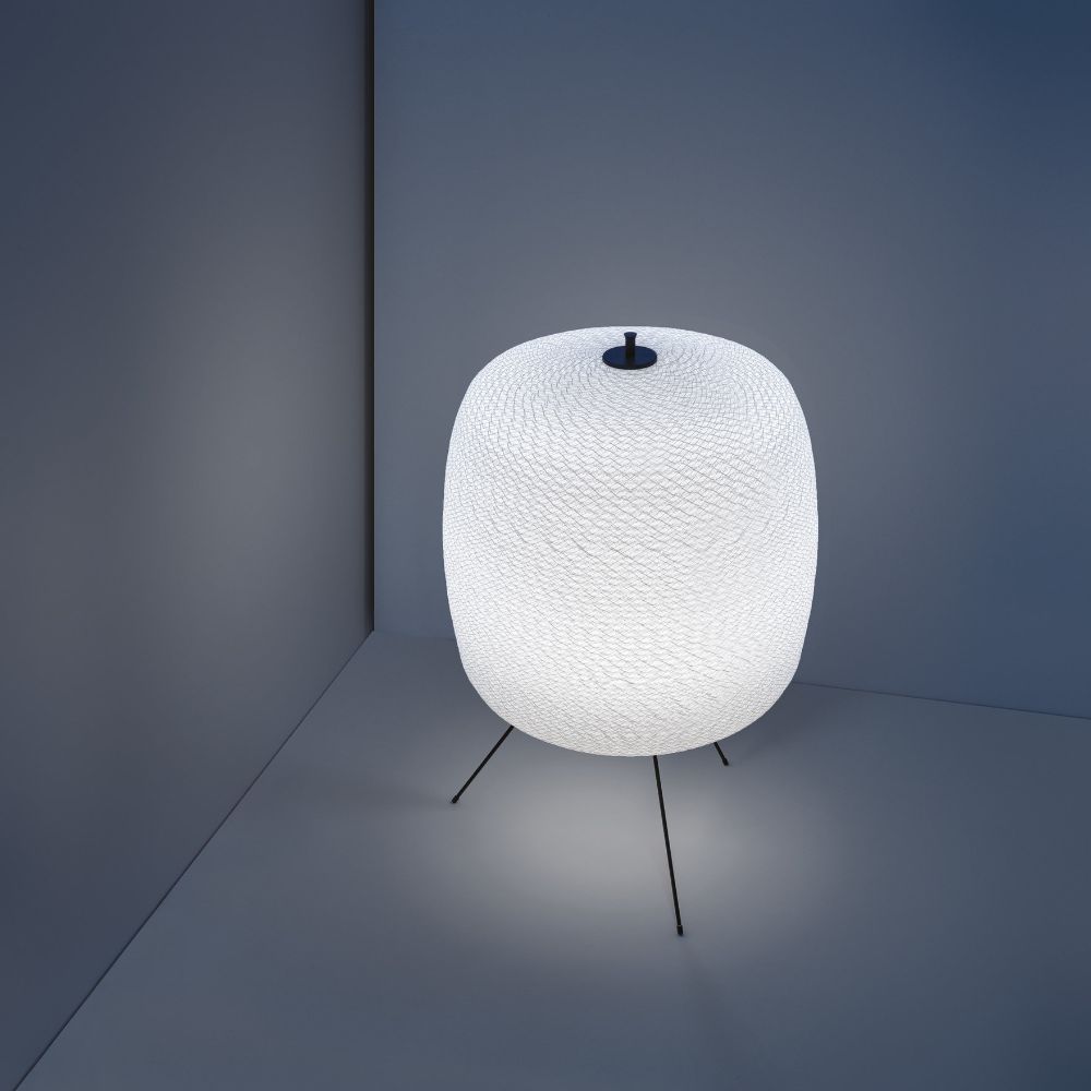 La designer Paola Lenti collabore avec Davide Groppi pour proposer le lampadaire Shoji Indoor, une lampe caractérisée par un design minimaliste et d'inspiration orientale. Paola Lenti exploite ses connaissances dans l'utilisation de la corde pour créer une forme arrondie et sinueuse qui enveloppe la structure en métal noir. L'effet lumineux de Shoji crée une atmosphère chaleureuse et enveloppante, donnée par la lumière qui filtre à travers la couche de corde. Adapté aux environnements intérieurs les plus minimalistes, Shoji est conçu pour une utilisation en intérieur et est disponible avec une lumière dimmable.