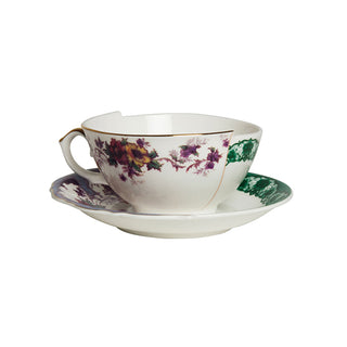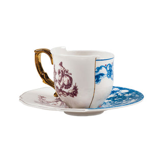 Made of refined Bone China porcelain, the Seletti Hybrid porcelain coffee cup with saucer achieves a luminous surface ideal for highlighting its delicate printed patterns. Designed for alimentary use, it includes both a cup and a coordinated saucer, each reflecting the Hybrid signature split. The cup’s golden handle introduces a subtle luxury detail that elevates the object without compromising its conceptual clarity. As part of the Seletti's Tableware line, this piece continues the creative exploration of the CtrlZak and Seletti collaboration within the larger Seletti Hybrid collection. For stylists or collectors researching Hybrid CTRLZAK collection compositions or exploring how to style a designer coffee cup, this set offers a refined balance between decoration, cultural storytelling and functional design. The dimensions , cup Ø 6.1 × H 5.5 cm and saucer Ø 12.8 × H 1.9 cm , make it perfect for espresso, macchiato or small aromatic blends.A Refined Accent for Modern Tablets and Artistic Interiors
