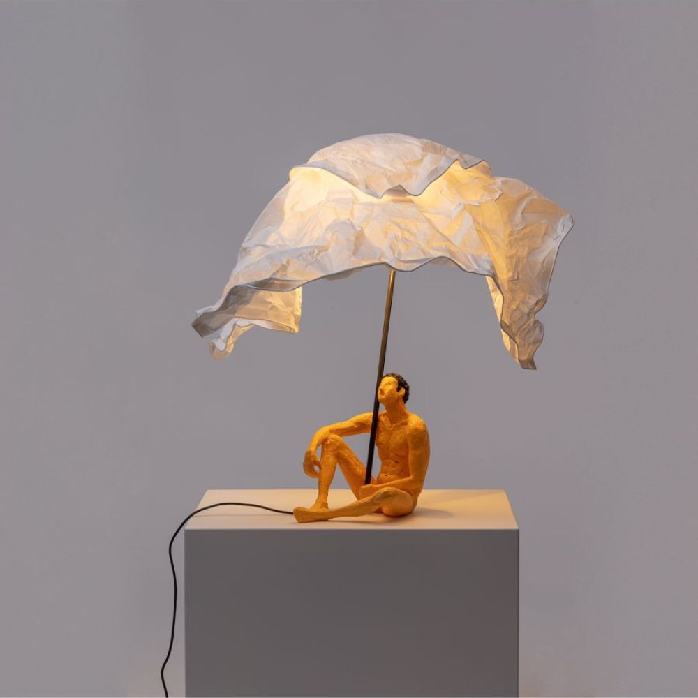 This designer resin sculpture reimagines the traditional concept of a sculpture, inviting viewers to see light as emotion rather than function. Its materials, smooth resin, reflective metal, and translucent paper, combine to create a subtle harmony of texture and depth. The soft illumination it emits feels intimate, contemplative, and human. With a discreet 2.5-meter cable, the sculpture anchors itself as both object and story, connecting the observer to its sculptural narrative. Designed exclusively for indoor use, it provides a warm, reflective atmosphere ideal for collectors who seek artistic table lighting with poetic character. Part of the Love Is A Verb collection Seletti, this creation embodies the brand’s distinctive union of emotional storytelling and bold design experimentation, standing as a tangible expression of the imaginative soul of Seletti.Design as living poetry
