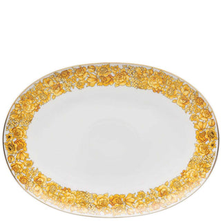 Shop Decor présente le plat ovale Medusa Rhapsody de 38 cm. Arborant un motif floral baroque de couleur dorée, la collection Medusa Rhapsody d'assiettes, tasses et autres accessoires est parfaite pour embellir et décorer votre table et votre maison avec une touche unique d'élégance et de sophistication. Rendez chaque occasion spéciale avec l'art inimitable de Versace Home.