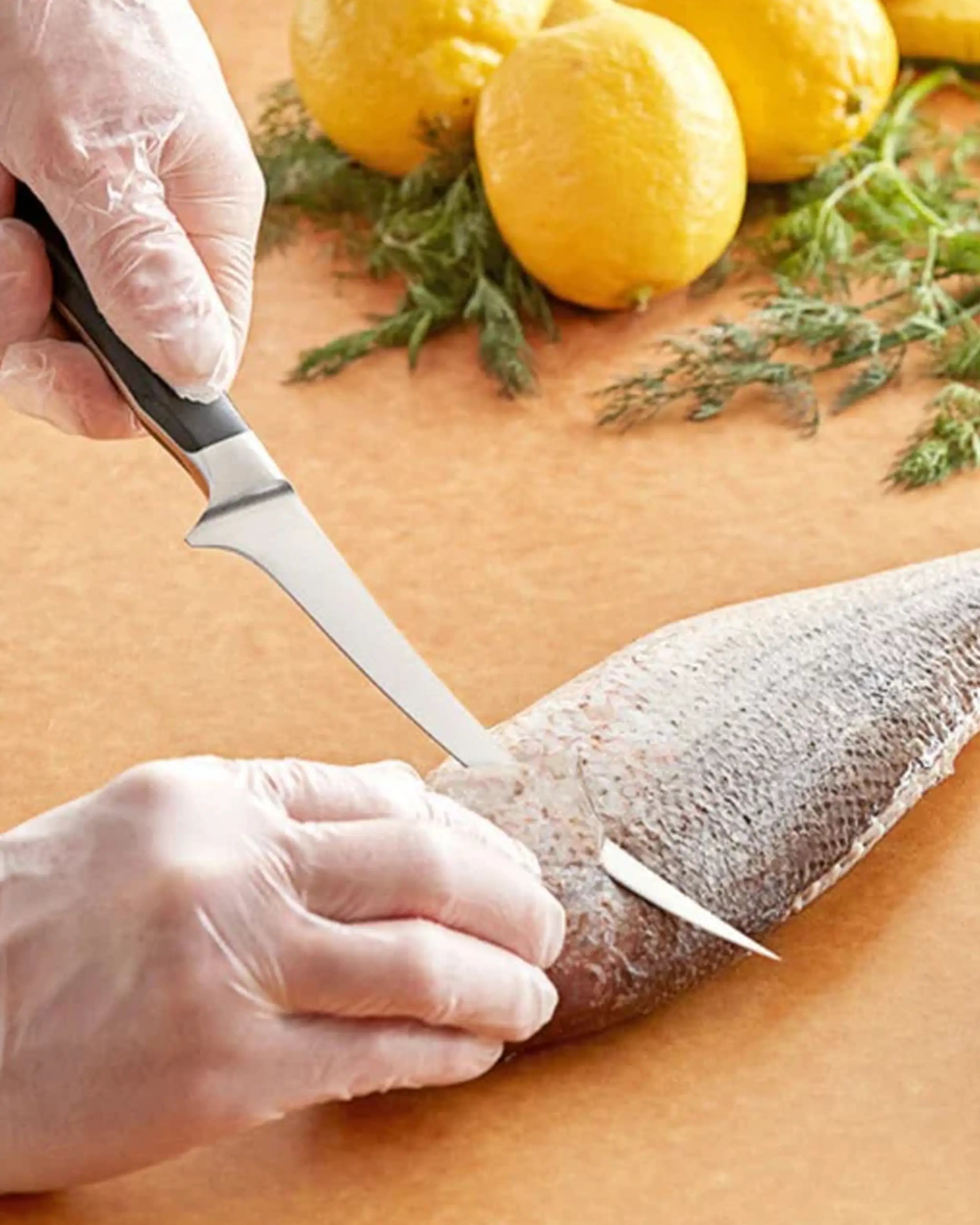 La lame extra-longue et étroite Wüsthof de ce couteau à filet Wüsthof Classic glisse à travers la viande et le poisson comme de la soie, garantissant aucune déchirure ni gaspillage. Son design ergonomique, forgé dans un acier de haute qualité, le rend idéal pour travailler avec des ingrédients crus ou cuits. C’est le compagnon parfait pour les tâches nécessitant de la finesse—surtout en utilisant le couteau à filet Wüsthof Classic lame fine 18 cm ou le couteau à filet 20 cm Wüsthof Classic.