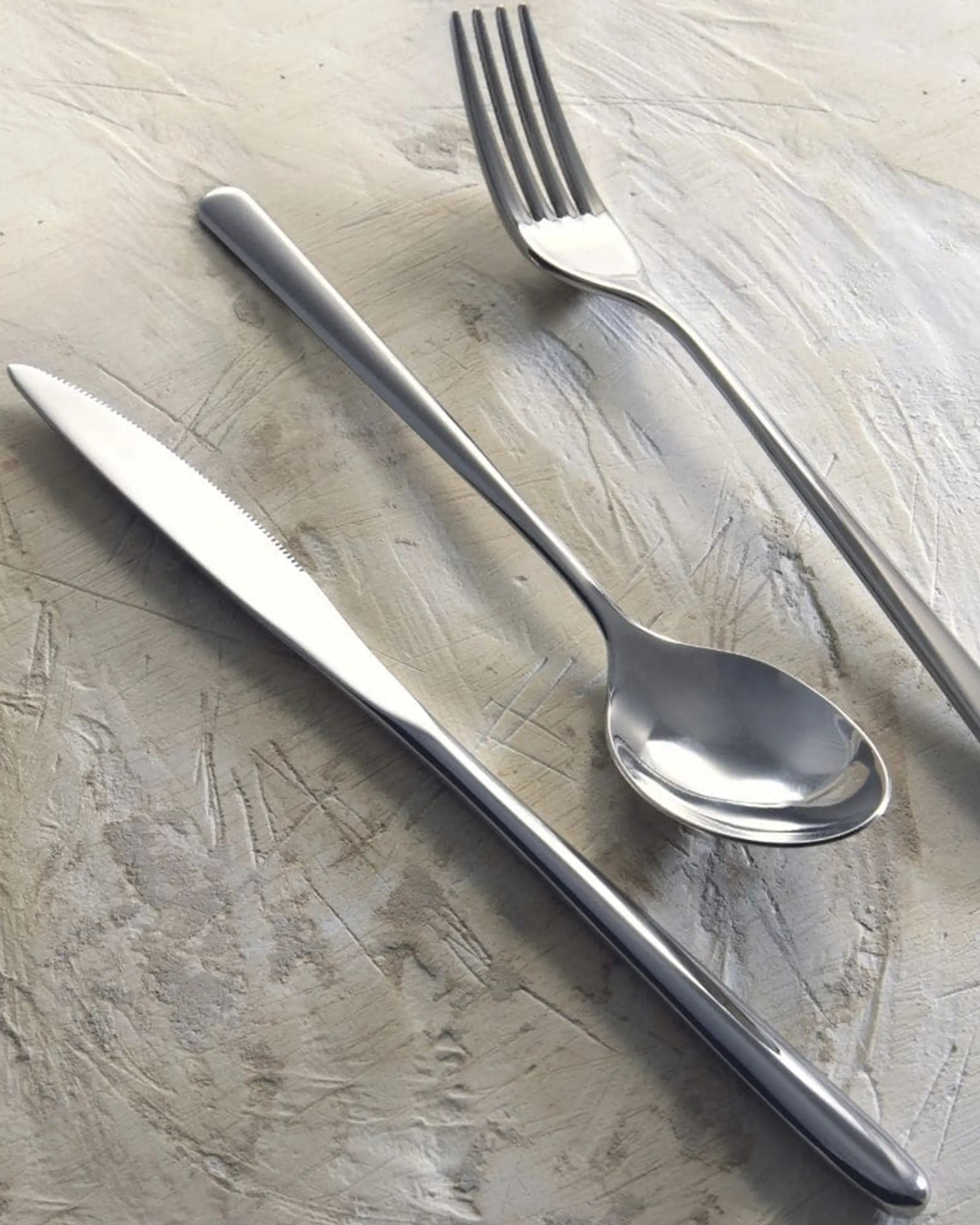 Il set di posate Stilo ab+ non è solo una questione di estetica: è realizzato pensando a praticità e durevolezza. Realizzato in acciaio di prima qualità e progettato per uso alimentare, ogni pezzo è sicuro per i pasti in famiglia e mantiene la sua integrità nel tempo. Il suo peso bilanciato e le linee morbide offrono una presa comoda, aggiungendo piacere a ogni pasto, che si tratti di un incontro informale o di un'occasione formale.