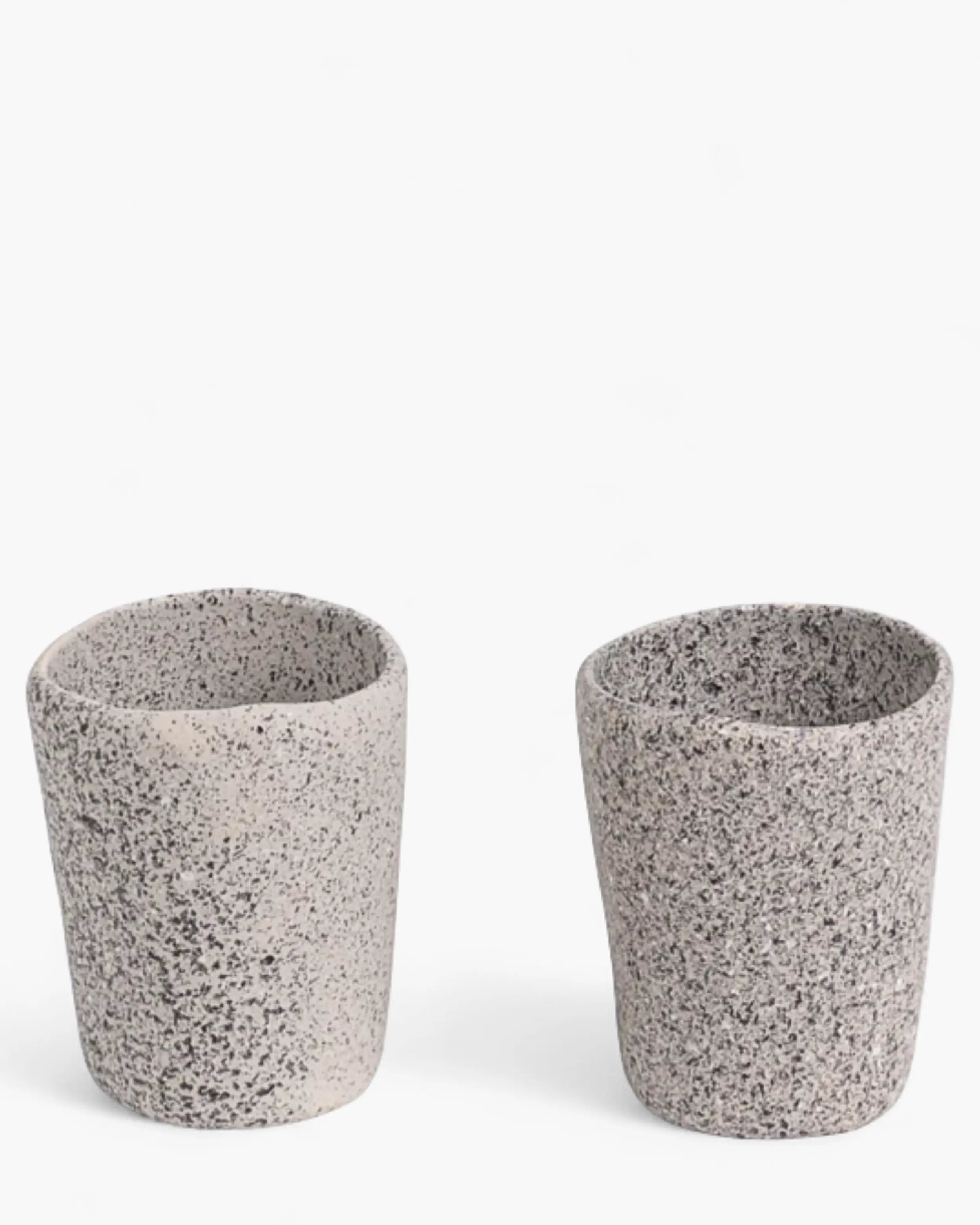 Cotti in porcellana di qualità, i bicchieri Newlithic combinano un delicato fascino tattile con una robusta funzionalità. Nonostante la loro finitura artigianale, sono sicuri per microonde e lavastoviglie, il che significa che si ottiene il calore degli oggetti fatti a mano senza complicazioni poco pratiche. Il loro peso e il profilo del bordo sono studiati per un sorso confortevole, che si tratti di acqua, succo freddo o un semplice aperitivo. La loro estetica giocosa ma raffinata risuona con lo spirito della collezione Estetico Quotidiano, portando eleganza quotidiana a qualsiasi tavola.