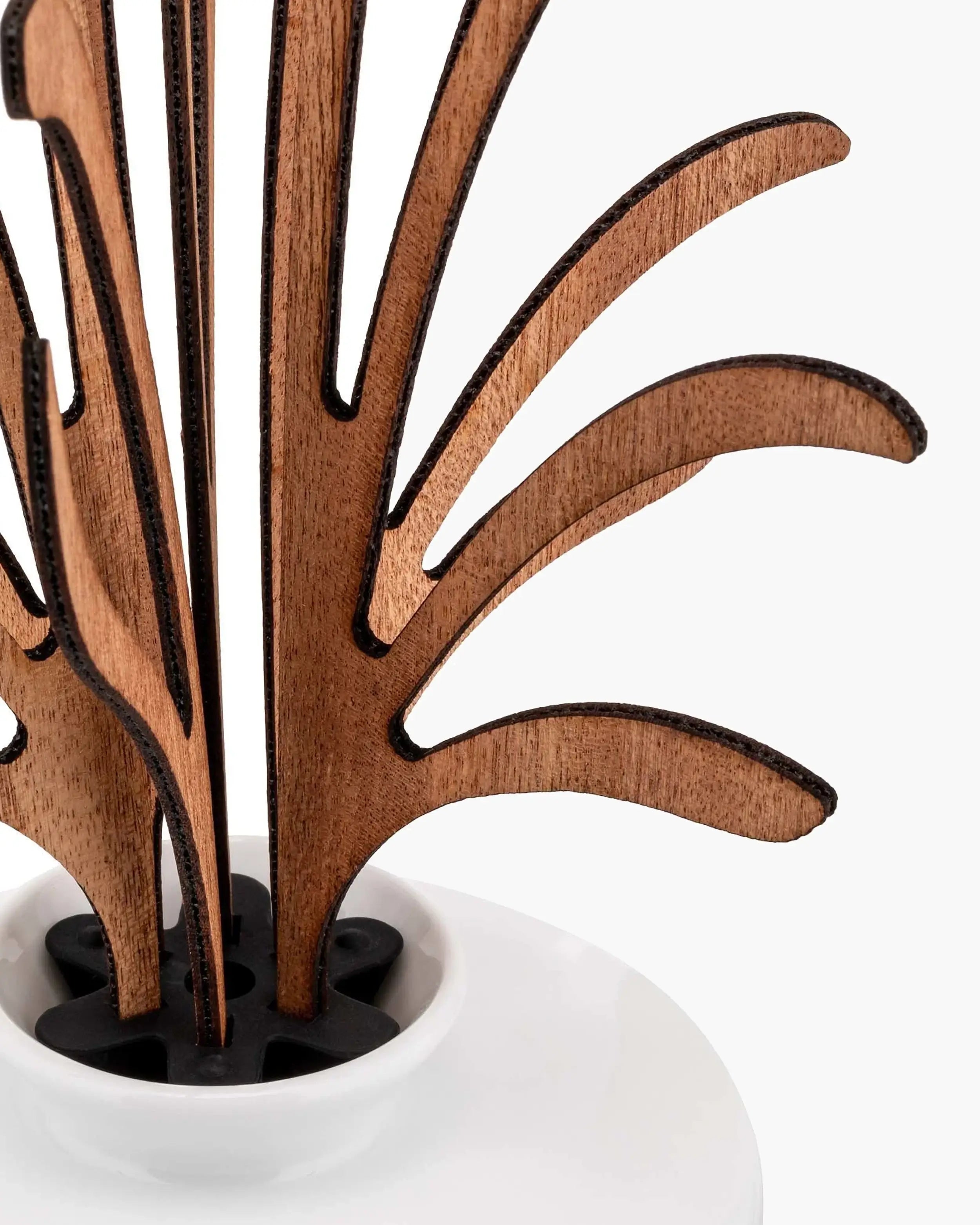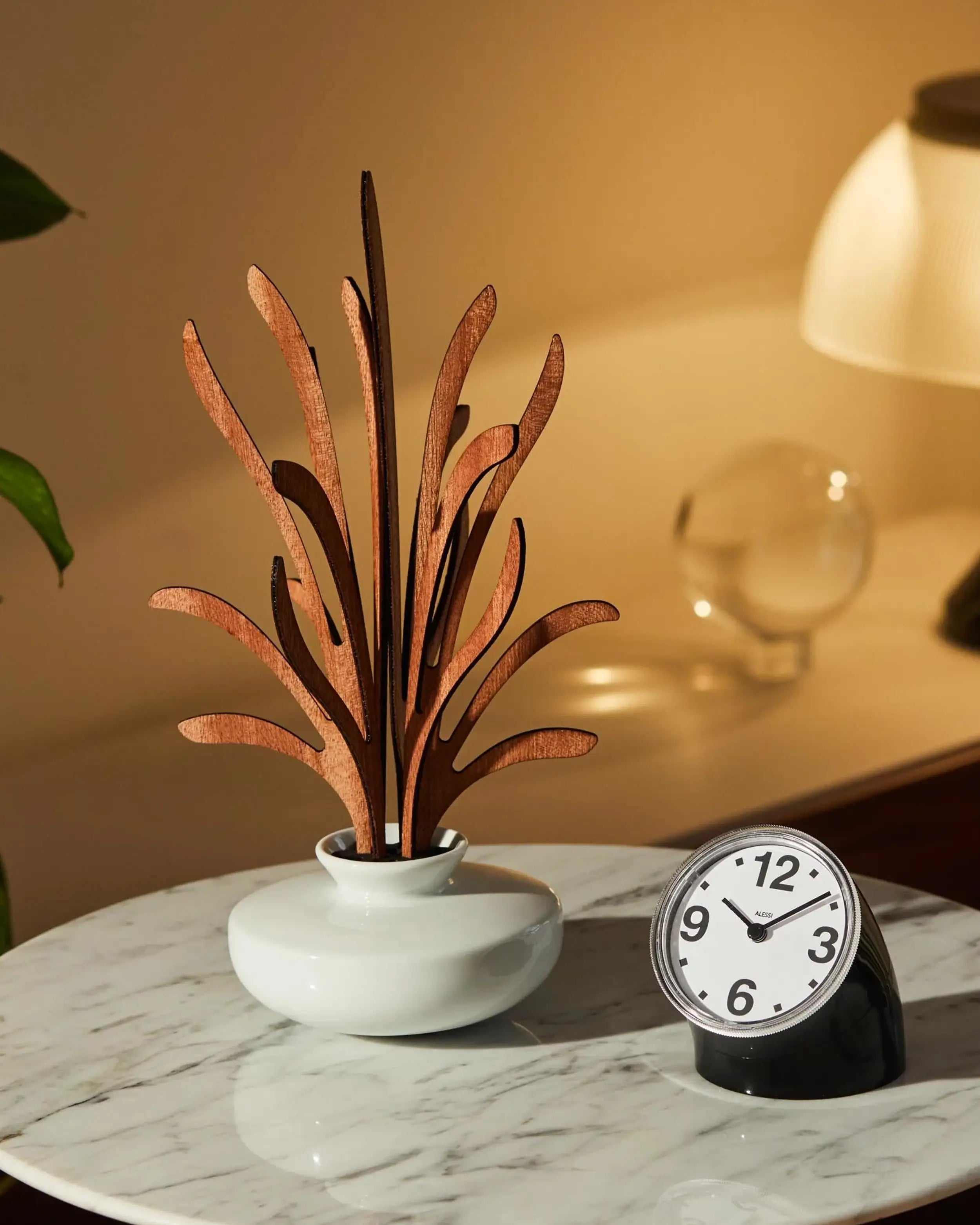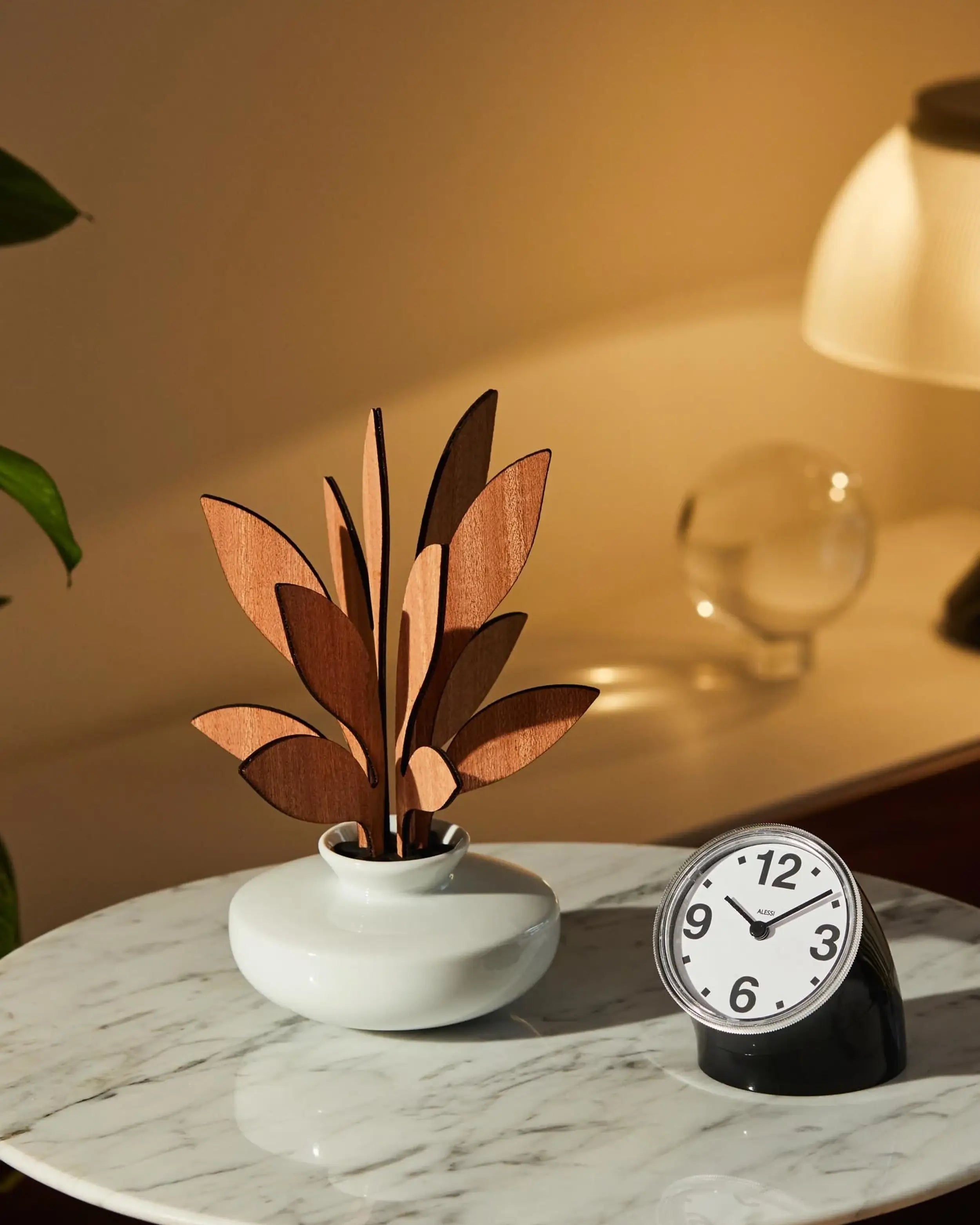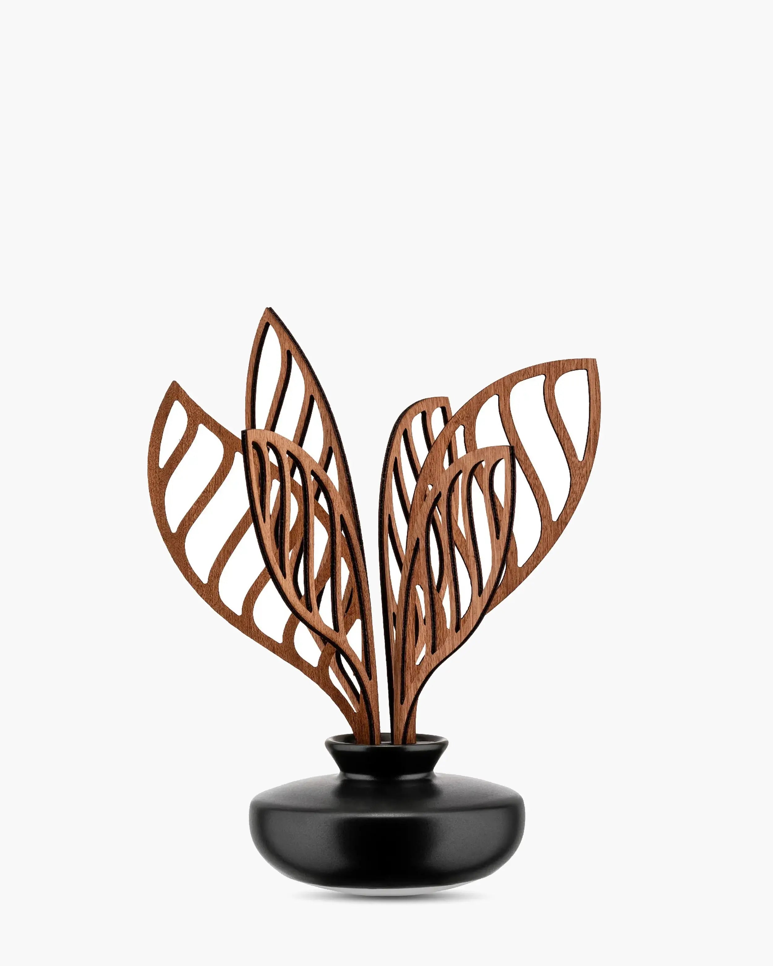 Al centro, il diffusore presenta una base in porcellana immacolata—elegante, minimalista e serena. Da essa si elevano cinque eleganti foglie in legno di mogano che diffondono naturalmente la fragranza, spargendo calma e carattere in tutta la stanza. Cerchi un Alessi diffusore di fragranze in Porcellana tanto funzionale quanto artistico? Questo fonde senza sforzo natura e artigianato.