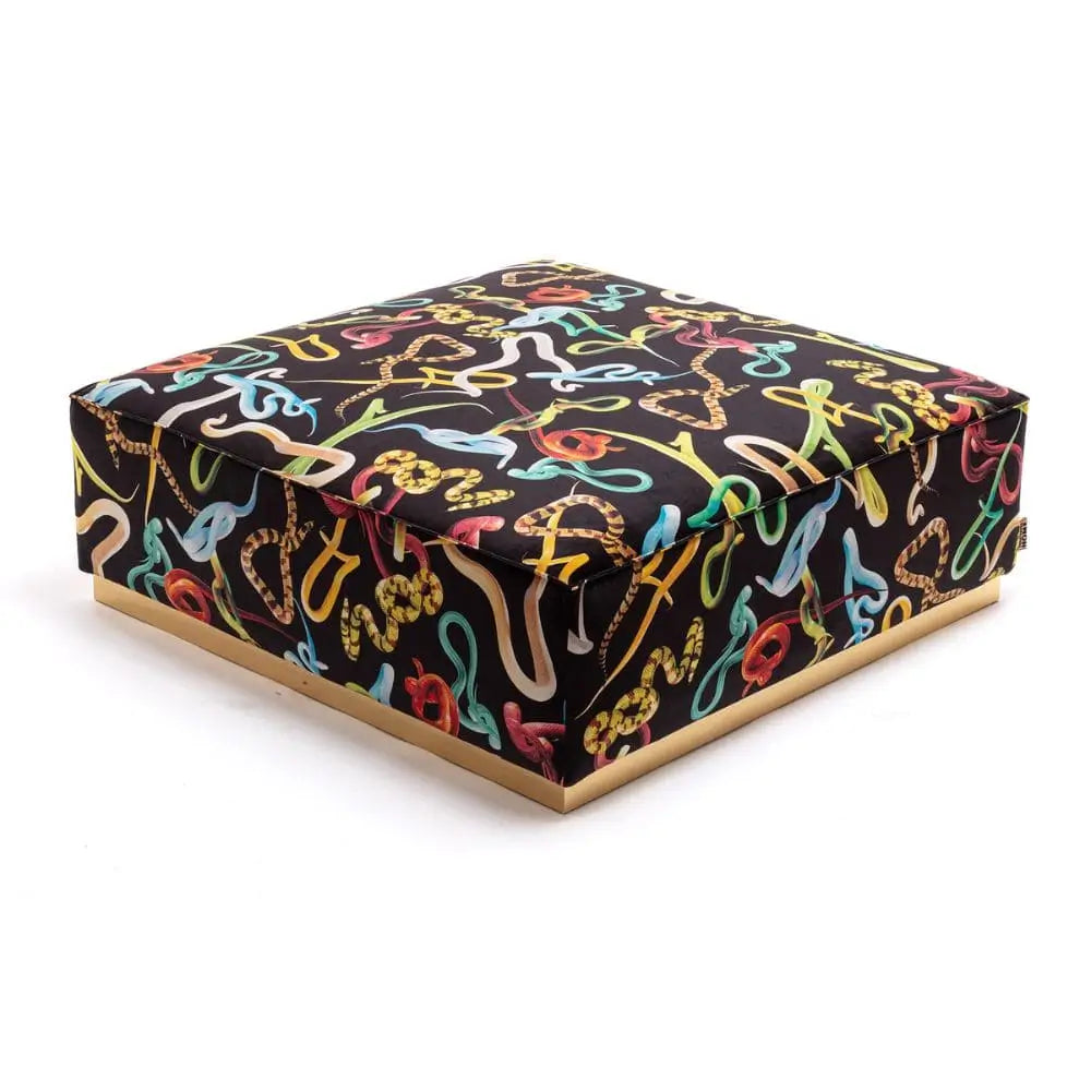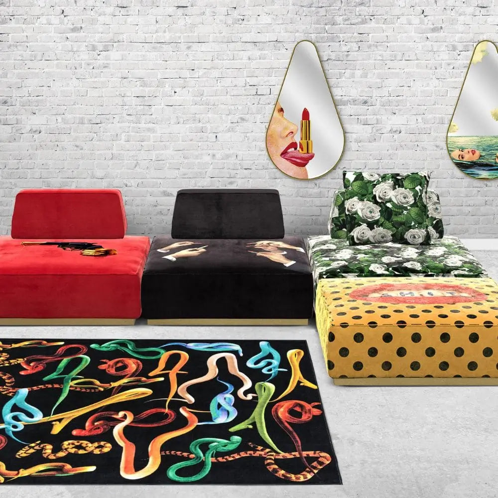 Il Seletti Toiletpaper Modular Pouf 103x103 incarna il lusso irriverente che definisce Toiletpaper Home. Ideato da Maurizio Cattelan & Pierpaolo Ferrari, questo Toiletpaper modular pouf trasforma un oggetto familiare in un audace pezzo centrale. Il motivo ipnotico dei serpenti si avvolge sulla superficie, creando una tensione tra bellezza e pericolo: un emblema della fascinazione del duo per l’assurdo. Spazioso e scultoreo, questo pezzo invita sia al relax che alla conversazione, dimostrando che comfort e provocazione possono coesistere in perfetto equilibrio.