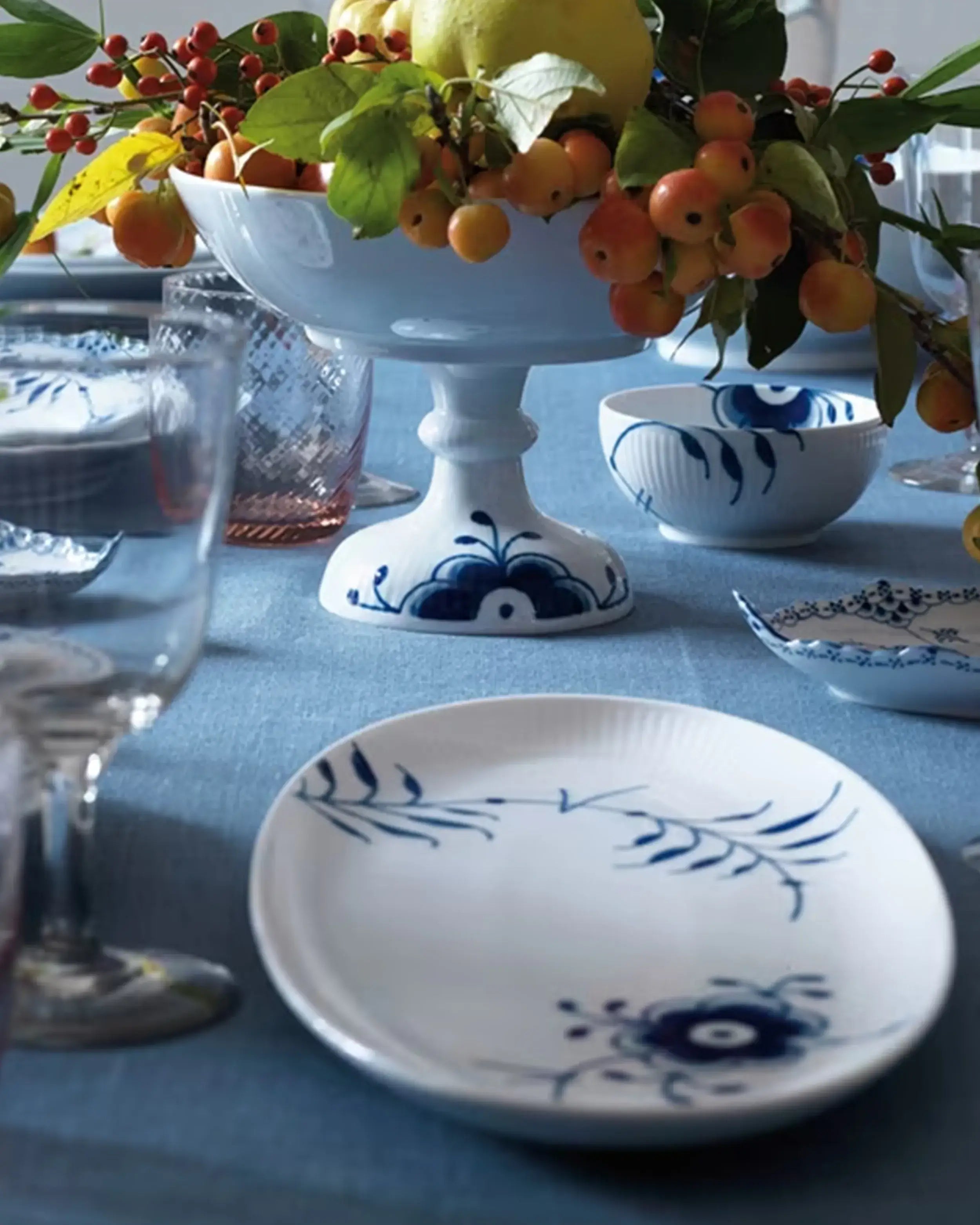 Eleganti stoviglie in porcellana di Karen Kjældgård-Larsen. Con i suoi piatti Blue Fluted Mega e altro ancora migliora la tua esperienza culinaria.