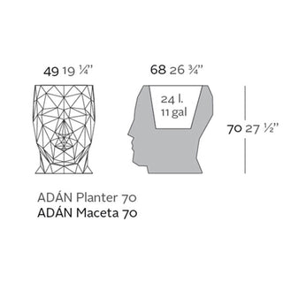 ADAN è la bellissima collezione di complementi di design progettata dalla designer Teresa Sapey in esclusiva per il brand Vondom. La linea ADAN è formata da 3 elementi ricchi di personalità: il vaso MACETEROS ADAN, lo sgabello TABURETE ADAN e il tavolino MESA ADAN. L'intera collezione è il risultato di un perfetto equilibrio tra passato e futuro: più che complementi sono pezzi di un'architettura plurifunzionale. Qui proposto online da Shop Decor è MACETEROS ADAN, il vaso sfaccettato come fosse un diamante. Realizzato in polipropilene opaco, è adatto sia per uso interno che esterno. Le sue dimensioni sono: 49 x 68 cm. con altezza di 70 cm.