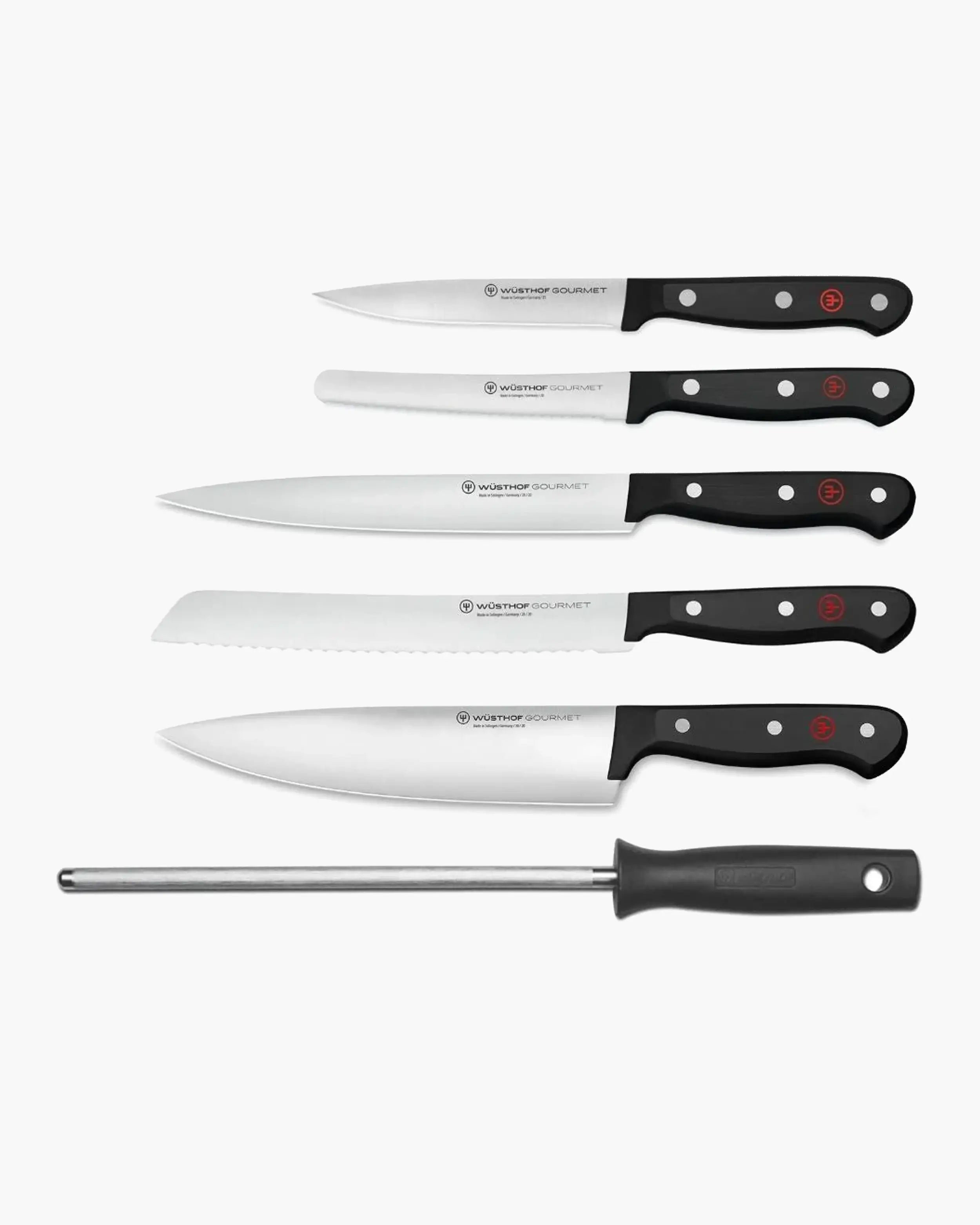 Il set di blocchi coltelli Wüsthof Gourmet è una scelta raffinata e funzionale per chi apprezza le prestazioni senza compromessi. Progettato da Wüsthof e parte della acclamata collezione Knives & Co, questo blocco compatto della fidata Wüsthof Gourmet Collection offre strumenti essenziali per padroneggiare i pasti quotidiani con precisione professionale.