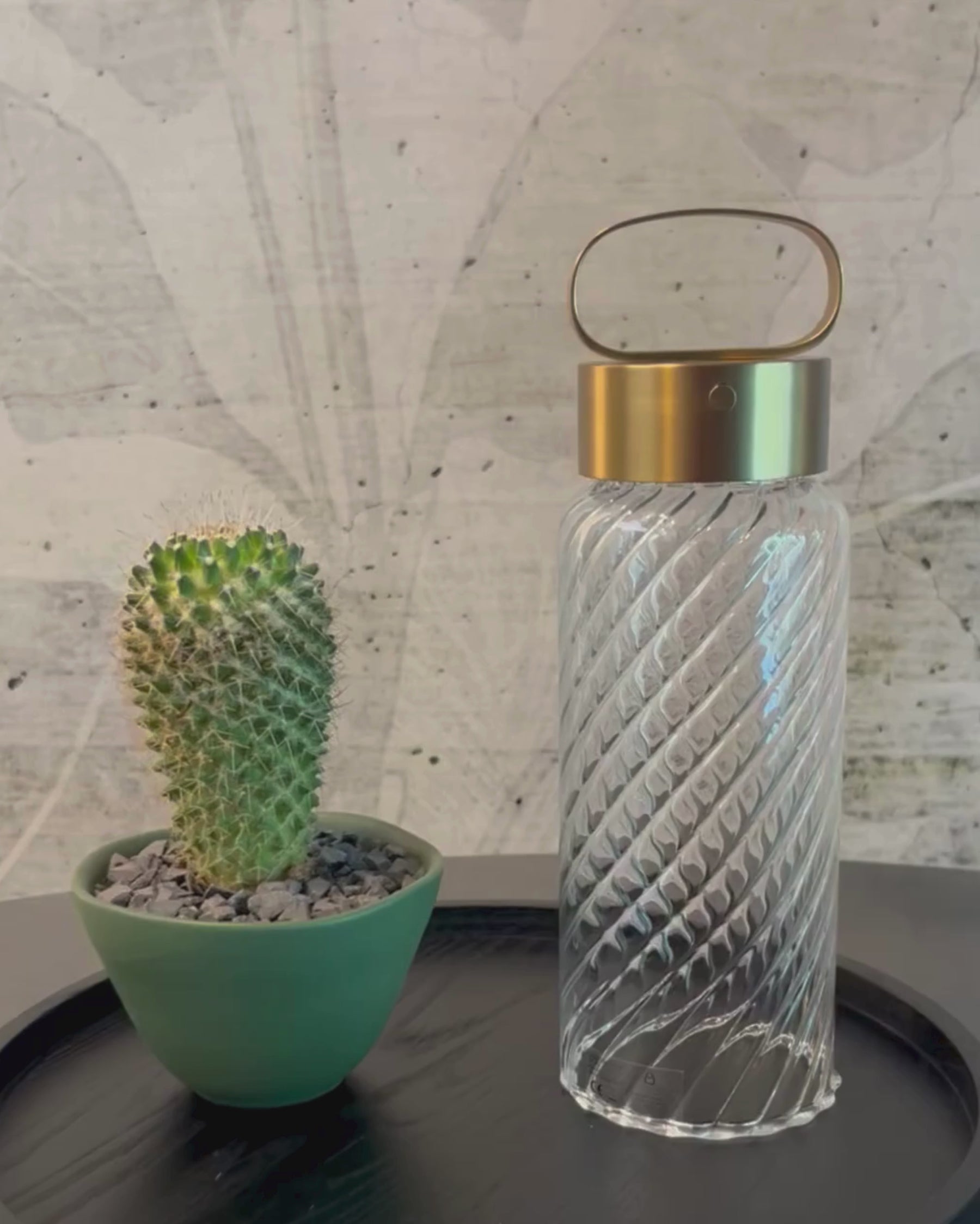 Ogni pezzo di illuminazione in vetro fatta a mano è il risultato della lunga tradizione di maestria del vetro di Ichendorf. Il corpo è realizzato in vetro, combinato con alluminio dorato e acrilico per equilibrio e durata. Disponibile in tre finiture: trasparente, torciglione e satinato; gioca con la luce in sottili variazioni di texture e riflessi. Ogni versione valorizza il dialogo tattile e visivo tra materiale e bagliore, rendendola adatta sia per interni contemporanei sia per terrazze esterne. Il suo nucleo LED ricaricabile completa la raffinata arte del vetro del marchio con un’intelligenza tecnologica discreta.