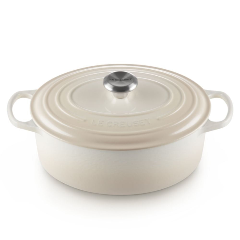 La Le Creuset Signature Cast Iron Oval Casserole è un'aggiunta senza tempo a qualsiasi cucina, che unisce una maestria superiore alla versatilità. Progettata per esaltare i sapori attraverso una distribuzione uniforme del calore, questo pezzo della collezione Cookware garantisce piatti cotti lentamente perfetti, arrosti e stufati. La sua forma ovale offre ampio spazio, rendendola ideale per accogliere tagli di carne più grandi e porzioni generose fino a sei persone.
