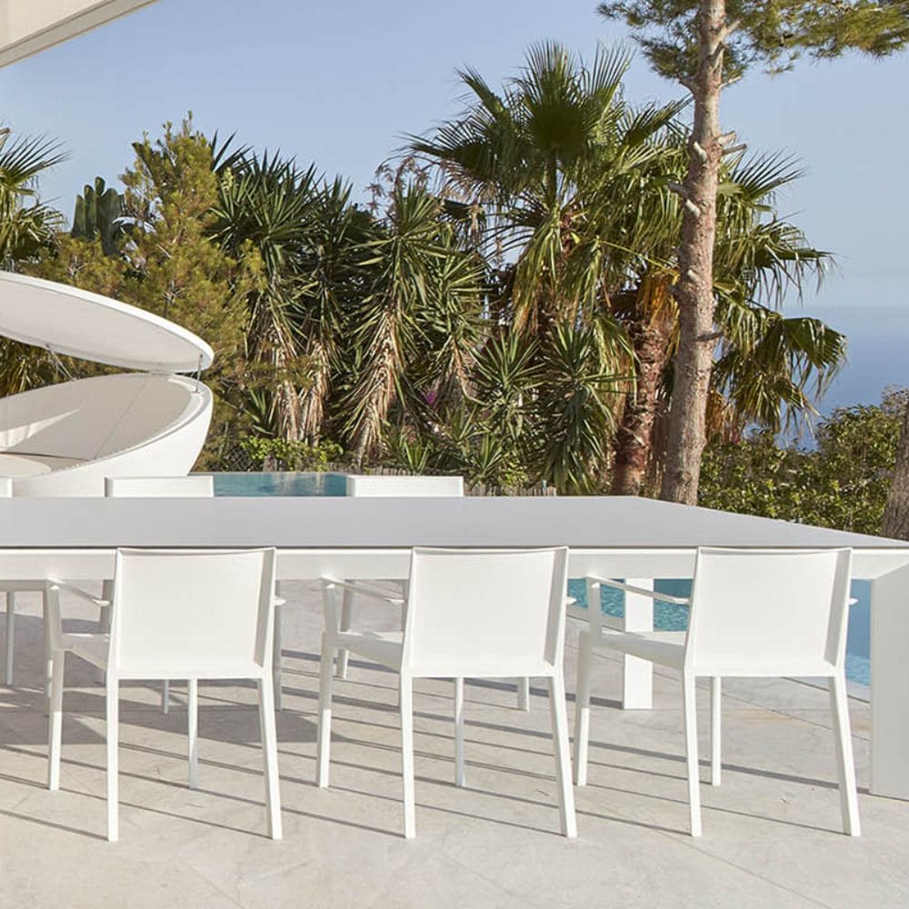 Trasforma il tuo outdoor con i design iconici di Ramón Esteve, dai divani componibili Vela alle sedie Faz, unendo eleganza e funzionalità.