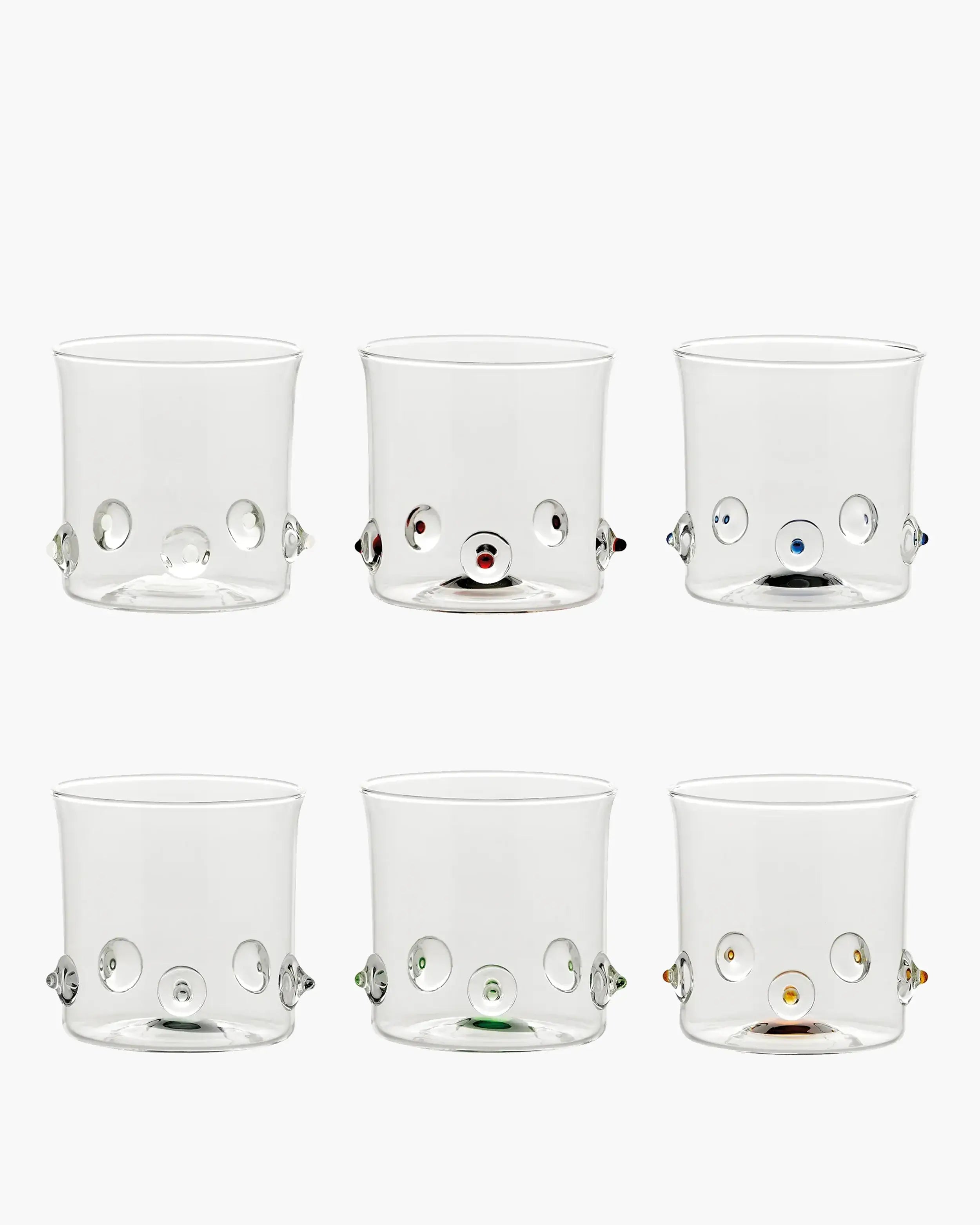 Alti 8 cm (3,14 in), questi bicchieri hanno la dimensione ideale per servire acqua, succhi o anche i tuoi cocktail preferiti. Parte della prestigiosa selezione Bicchieri, portano un senso di raffinatezza e versatilità a qualsiasi impostazione della tavola, sia essa informale o formale.