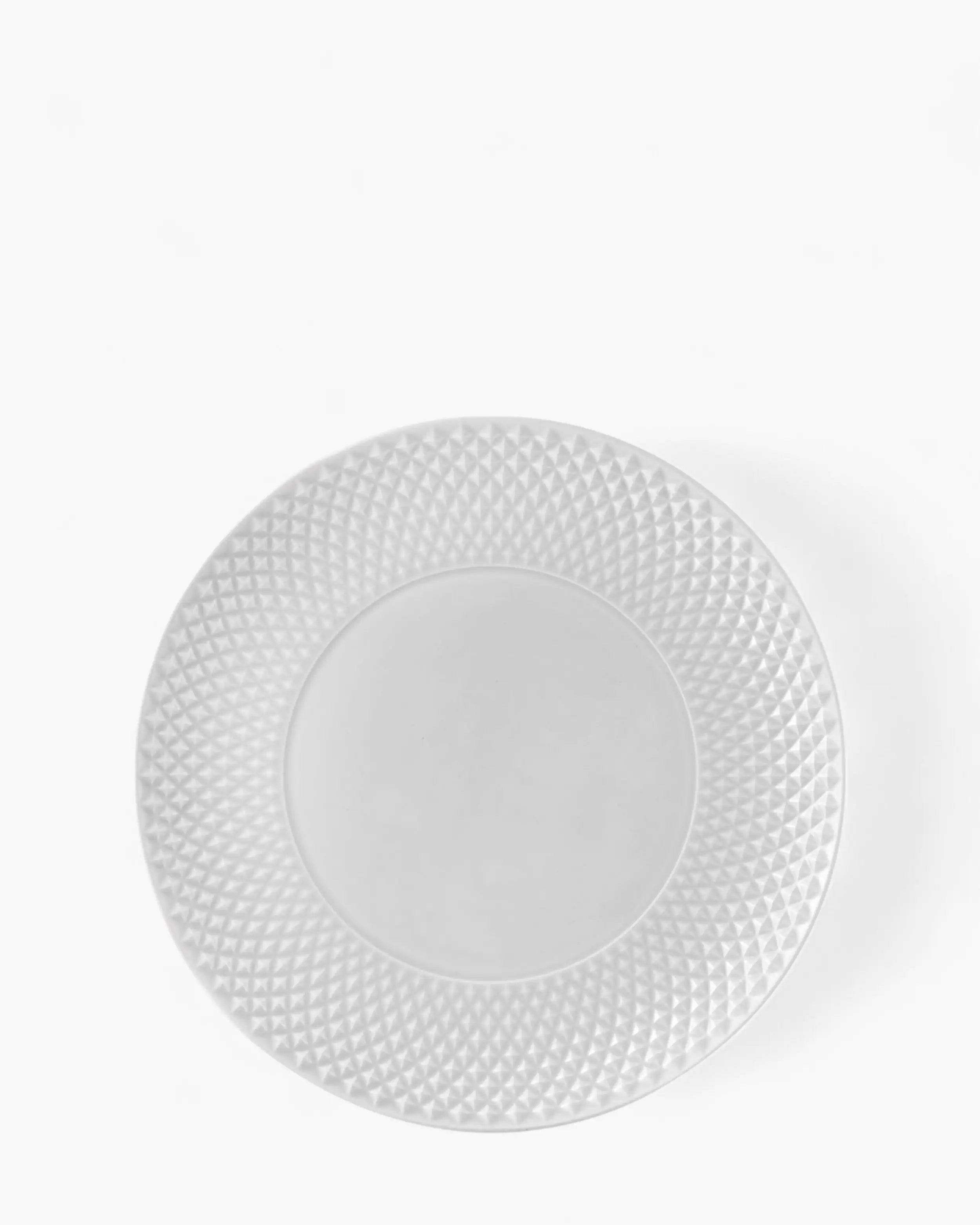 Raphael Bordallo Pinheiroの遊び心あふれる精神によって形作られたBicosのテクスチャーは、細かく織られた布地を磁器に翻訳したかのような触覚的なリズムを提供します。ミニマリストなセッティングに存在感を与え、豊かなパターンのリネンやストーンウェアと自然に調和します。Bicosファミリー全体では:プレート、