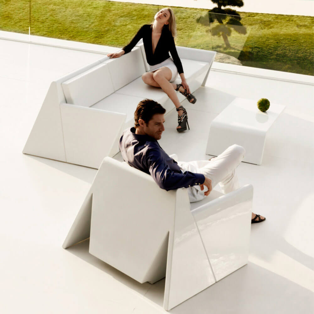 A-cero チームは、シンプルでエレガントな形状と非常に革新的なデザインが特徴のVondom REST コレクションを制作しました。このコレクションのすべてのオブジェクトは、紙を折って意外性のある独特の形を作り、ある程度のシンプルさを維持する日本の芸術である折り紙からインスピレーションを得ています。これらのデザインオブジェクトはポリエチレン製で、100% リサイクル可能で、ニーズに応じてあらゆる屋外および屋内スペースに適応できます。Shop Shop Decor中央モジュールソファ REST SOFA CENTRAL を、ホワイト、エクリュ、ブロンズの 3 色で提案しています。このソファの利点は、中央部分と側面部分を通じてモジュール化されているため、配置されたスペースに価値を付加するカスタマイズされたオブジェクトを作成できることです。中央部分は、プロジェクトを開始したり、同じコレクションのソファを拡張したりするのに最適です。REST: リラックスできるデザイン。