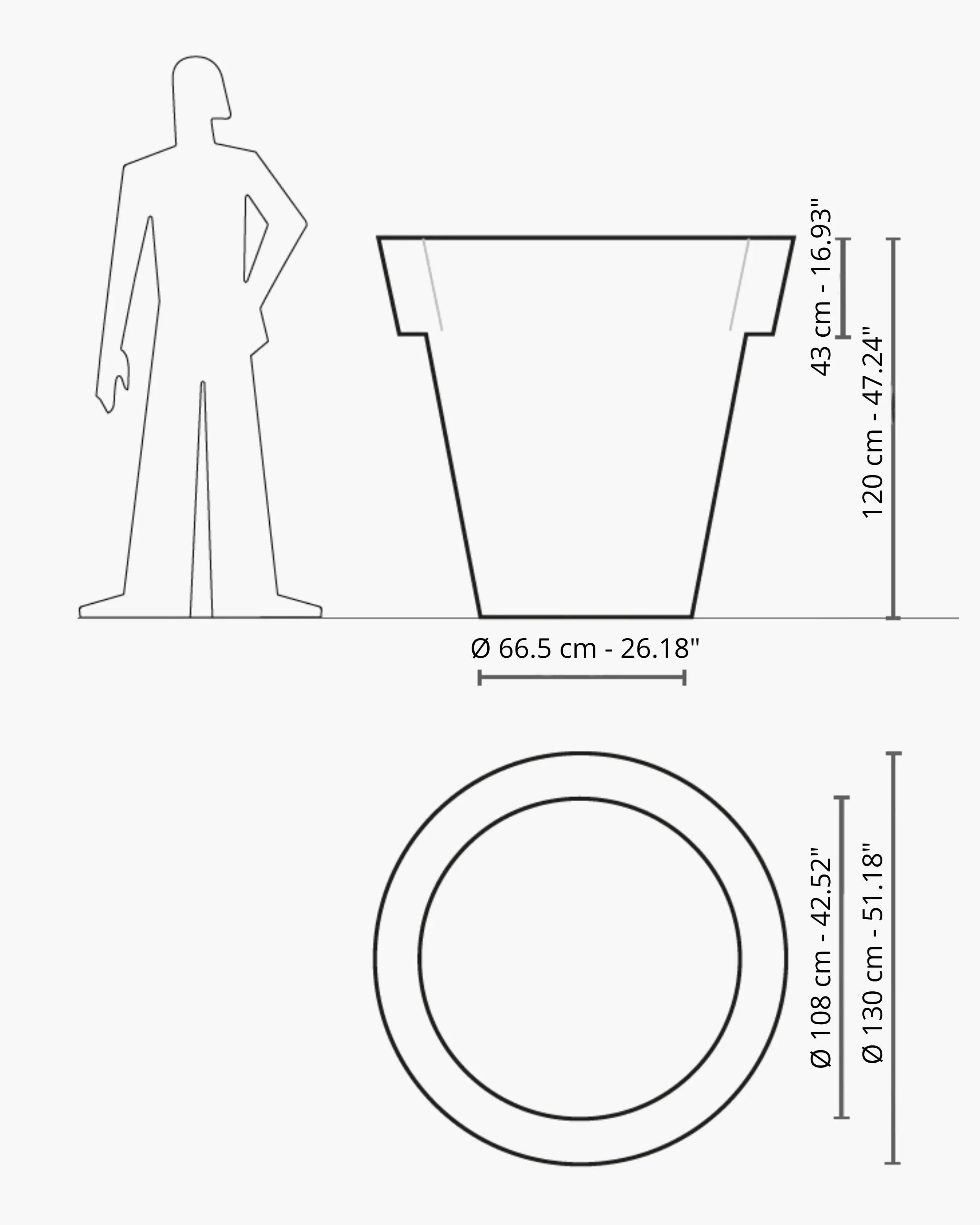SerralungaのVas One/Two vase with lightで、Luisa Bocchiettoはオリジナルのプランターの壮大な特徴を、光の魅力的な存在感を加えることで高めています。かつて形と比率の象徴であったものが、このバージョンでは、庭園、テラス、インテリアに輝くオーラをもたらす雰囲気の灯台となります。その輝きは機能的なオブジェクトを自然とデザインの舞台に変え、モダンなヴィラや高級ホテルのテラスに理想的です。
