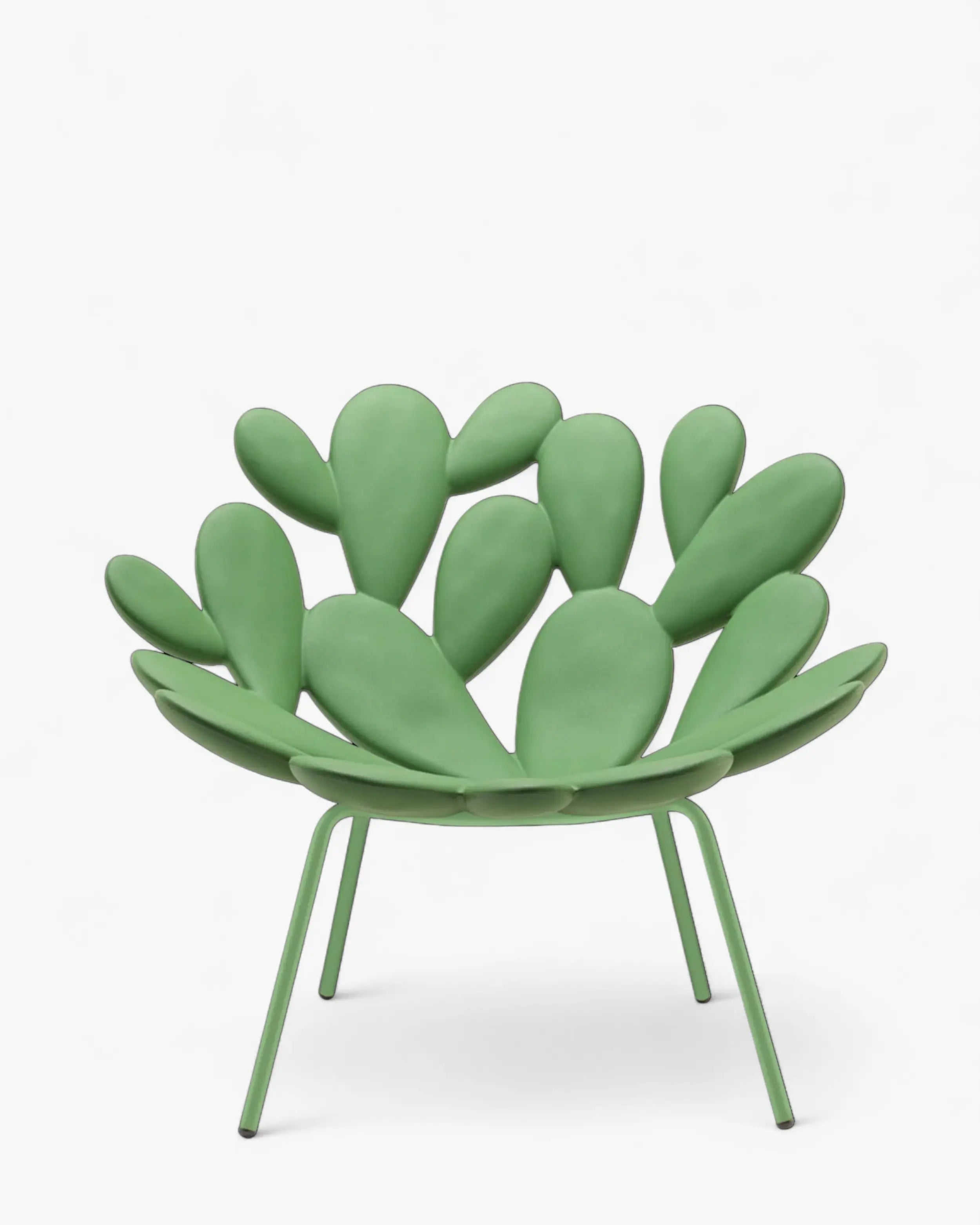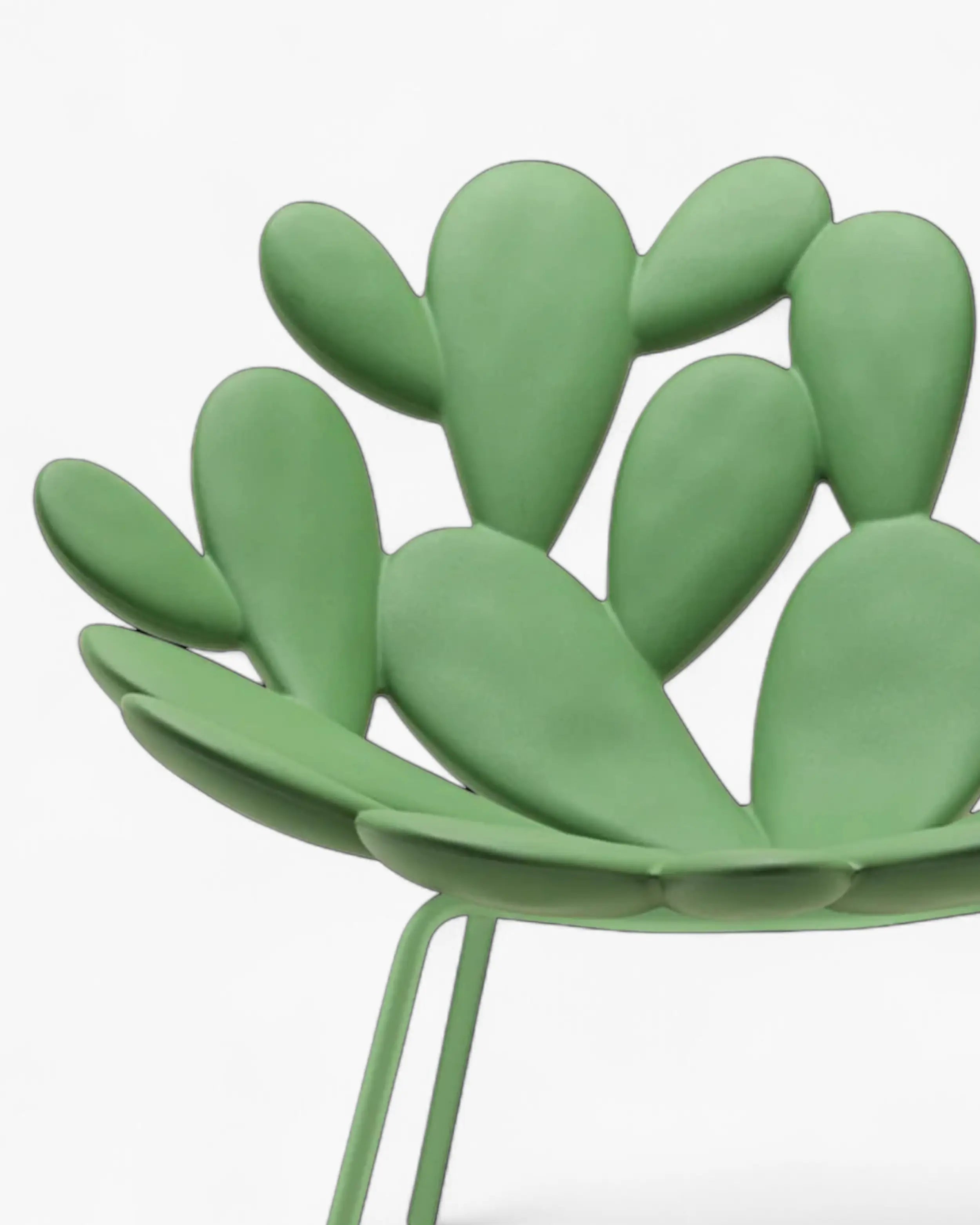 パレットはトーンを自由に設定できます:深いグリーンは豊かな響きを、ブラックはグラフィックなコントラストを、鮮やかなフクシアやピンクは遊び心のあるキャラクターを、純粋なホワイトは穏やかな明快さを、そしてイエローは陽気な楽観主義を表現します。単独でステートメントとして使うか、色彩の対話でグループ化しても、サボテンにインスパイアされた椅子は楽しいデザインのアイコンとなります。
