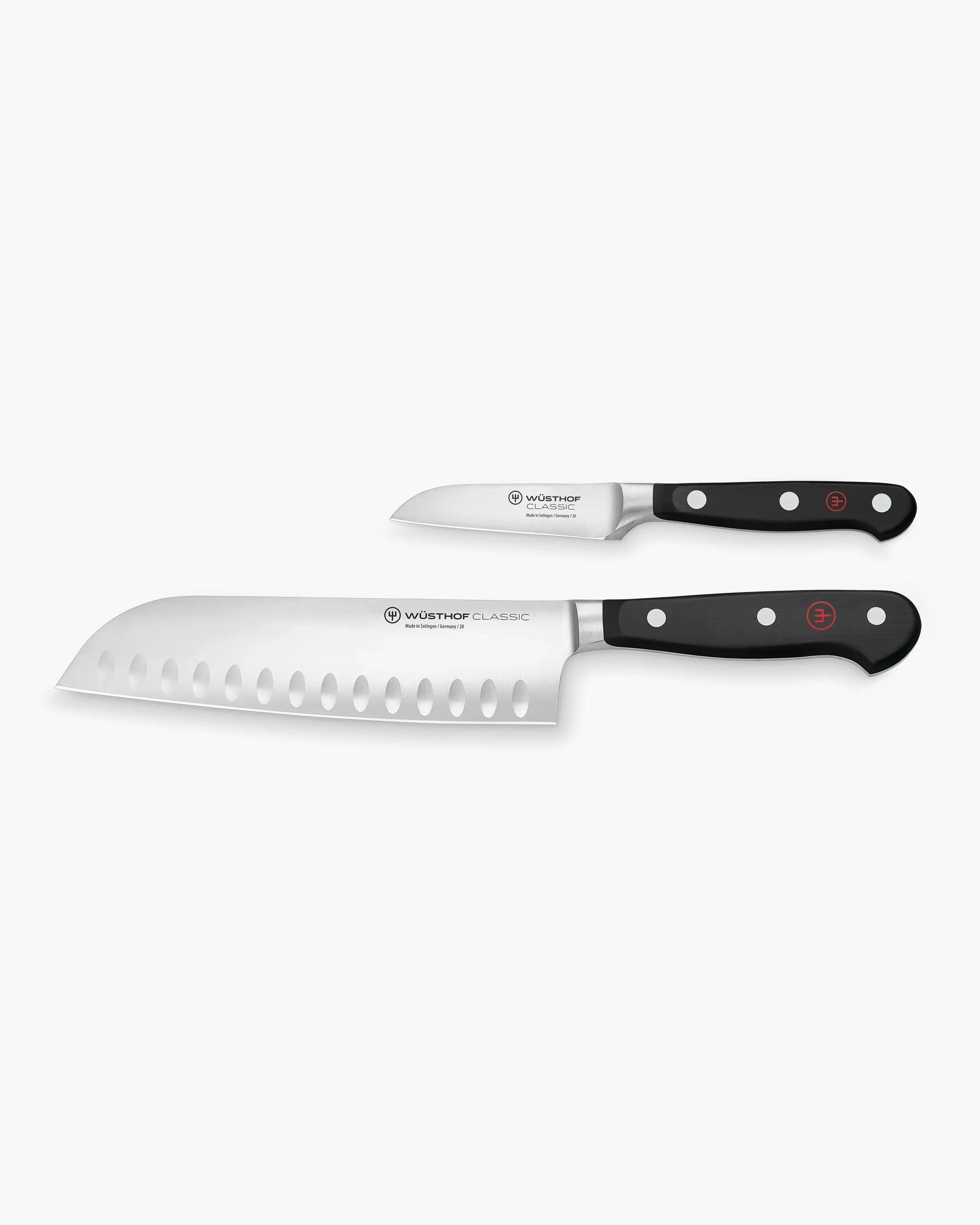 wusthof classic collectionからのこのセットは、2つの高性能ブレードを備えています:スライス、刻み、さいの目切りに適した中空刃のwusthof classic santokuナイフ(17 cm)と、皮むきや細かい作業を外科的精度でこなす多用途の8 cmのwusthof classic paring knife。野菜の下ごしらえや肉のフィレ作業にかかわらず、これらの刃はwusthof knife setsの中でも比類なきバランス、コントロール、鋭さを提供します。