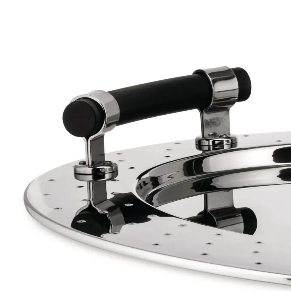 完全にスチール製で食品用に設計されたこのトレイは、頑丈でありながら印象的です。完璧な仕上げを保つために手洗いを推奨します。もしAlessiのスチール製丸型トレイや特徴的なスチールトレイ Alessiをお探しなら、このデザインは卓越した機能と高級なスタイルを兼ね備えています。
