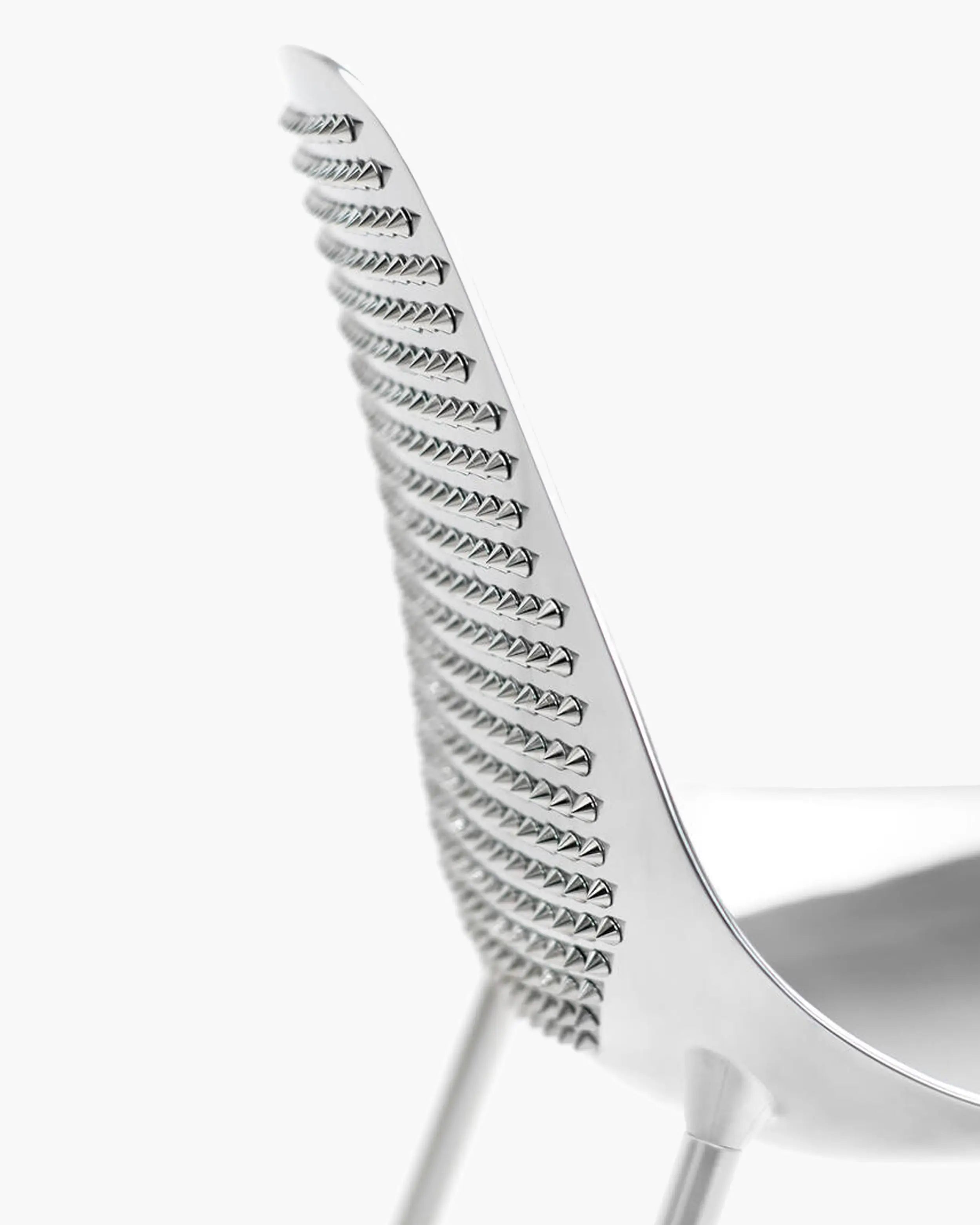 現代のシーティングを大胆に再解釈したものです。大胆な美学によって定義されたこの作品は、Mammamiaの馴染み深いシルエットを力強いステートメントピースへと変貌させています。耐久性のあるアルミニウムで作られた構造は積み重ね不可で、屋内使用専用に設計されており、その独自性を強調しています。各背もたれには398個の手作業で取り付けられたスタッズが丁寧に装飾されており、デザイン愛好家にとって真のコレクタブルであることを瞬時に示しています。