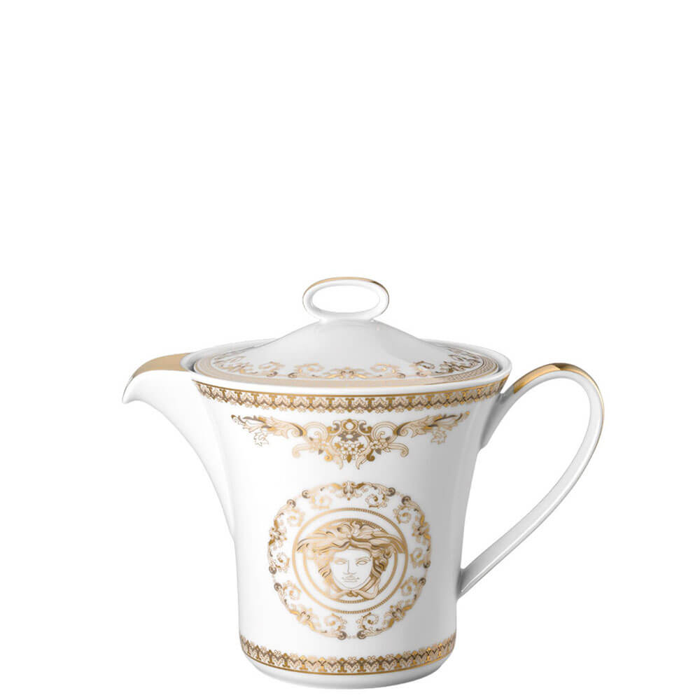 Shop Decorメデューサ ガラ ティーポットを提案します。メデューサ ガラは、Versace Homeがデザインしたプレート、カップ、花瓶、その他のテーブル アクセサリーの貴重なコレクションです。メデューサの頭の象徴的な表現で装飾されたメデューサ ガラ コレクションは、クラシックなスタイルの金色のディテールとカラーを組み合わせ、洗練されたエレガントなテイストのユニークなテーブルウェアを生み出しています。Versace Homeの紛れもない芸術で、あらゆる機会を特別なものにしましょう。