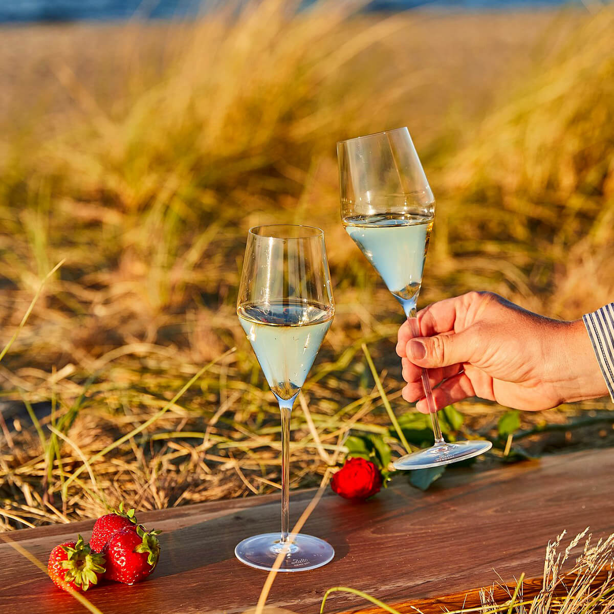 ザルトによる無鉛で洗練された弾力性のある軽いクリスタルガラスのゴブレット。ザルトとワイン専門司祭ハンス・デンクの出会いにちなんで名付けられたデンクアートコレクション。オーストリアの会社 Zalto は、14 世紀以来、ルネッサンスのガラス加工技術を継承する熟練したガラス職人の仕事のおかげで、高品質の口吹きゴブレットの製造に特化してきました。透明でエレガントなシャンパン グラスは、シャンパンの高貴な泡の香りと風味のニュアンスをすべて捉えるのに最適です。ザルトは、その曲線が地球の傾きの角度を持つ聖杯を考え出しました。古代ローマ人は、飲み物をよりよく保存するために、これらの角度を備えた容器をすでに構築していました。ガラスは軽いですが耐久性があり、食器洗い機でも洗えます。薄いグラスはシャンパンを元の温度に保ち、適切なグラスで味わいをよりよく引き出すことができます。 - 高さ 24 cm - 容量 220 ml