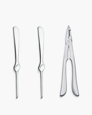 Designed for alimentary use, the ab+ shellfish cutlery set combines functionality with style. Each piece is crafted from high-quality steel, providing the durability needed for regular use while maintaining a polished appearance that complements any table decor. The carefully balanced design of each utensil offers a comfortable grip, making it easier to crack and enjoy shellfish without the usual hassle.