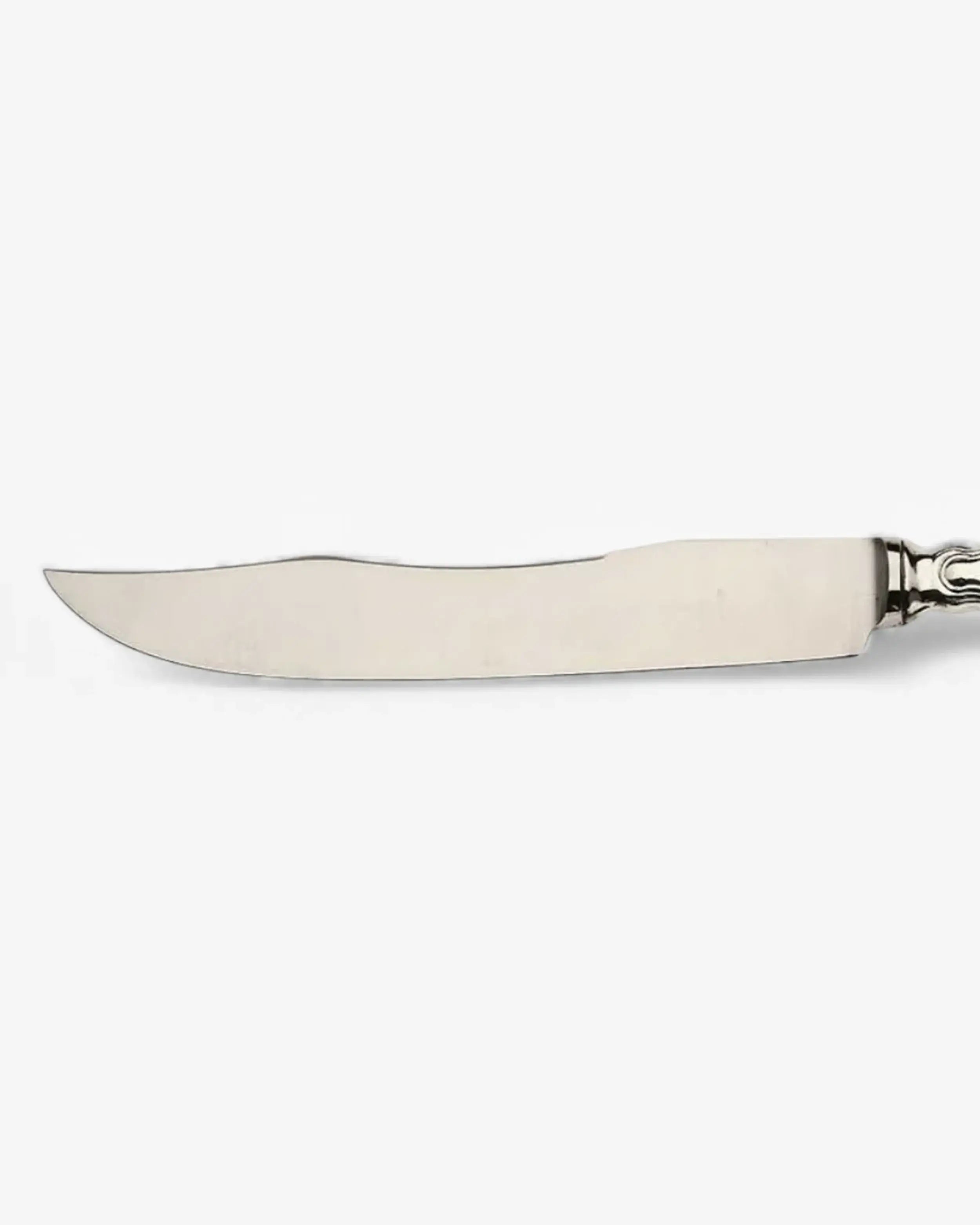 Made from high-quality Alpacca Silver, the serbelloni carving knife broggi is built to withstand the rigors of daily culinary tasks. Its robust silver-plated finish resists tarnish and wear, ensuring it retains its brilliant shine over time. Designed for alimentary use, this knife is easy to clean and maintain, making it the perfect balance of practicality and elegance. It’s a must-have for chefs and home cooks who value fine craftsmanship and quality during their dining.