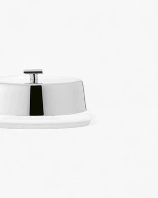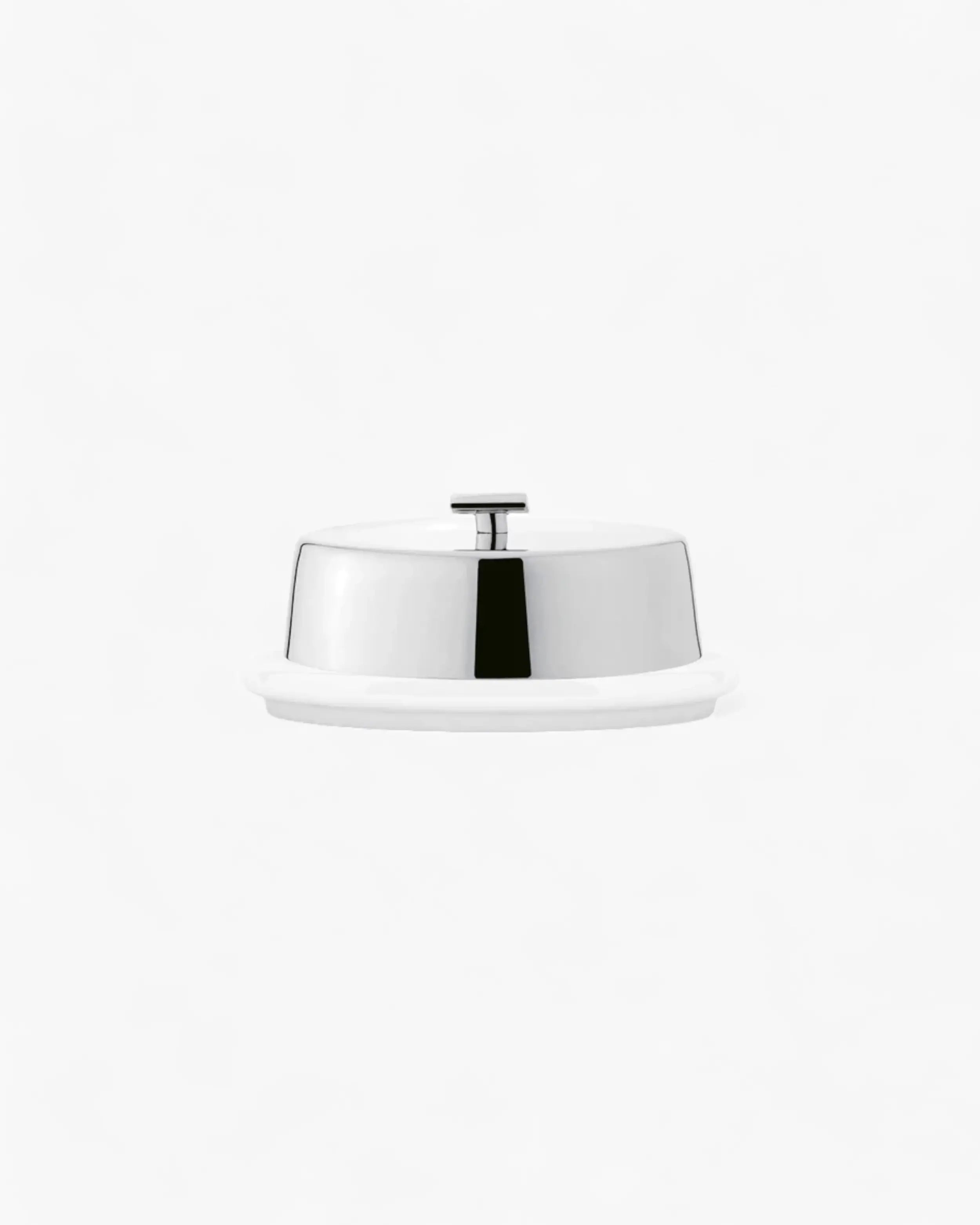 Part of the exclusive Table accessories collection, this broggi stainless steel butter dish is crafted from high-quality materials. The sturdy porcelain base ensures safe placement on any surface, while the polished stainless steel lid keeps the butter fresh and hygienic. Designed for alimentary use, it guarantees safe contact with food, making it an essential addition to any kitchen or dining table.