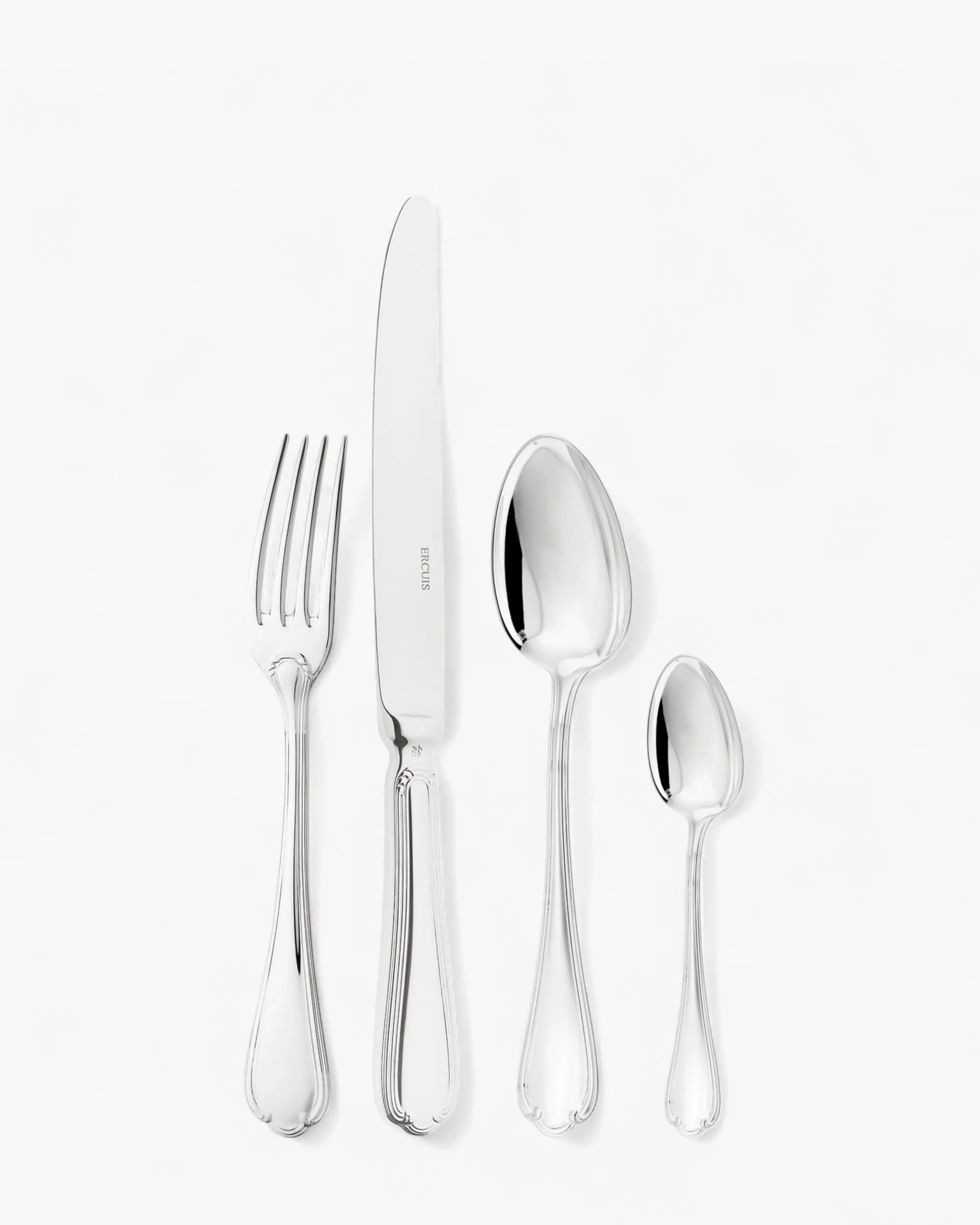 Ideal for elegantly set dining rooms, boutique hotels, or refined restaurants, this cutlery set brings substance and story to the table. Many enjoy layering it with sculptural centerpieces, rich textiles, and modern glassware like Zafferano's tumblers to create dynamic and luxurious table settings. Its appeal lies in its ability to harmonize with both classical and contemporary environments. Choosing Maison Ercuis means investing in over 150 years of savoir-faire. From the weight of the handle to the brilliance of the silver finish, each detail is a testament to enduring excellence. For those seeking refined silver-plated flatware that exudes charm, sophistication, and legacy, the Sully collection is a timeless essential.Ercuis Sully 24-piece cutlery set silver plated