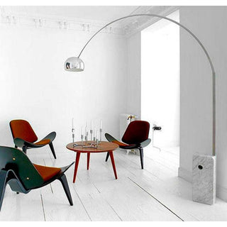 When people talk about Flos, the image of ARCO comes immediately to mind. This is the floor lamp designed by Achille and Pier Giacomo Castiglioni in 1962. Besteller of the company from Brescia, ARCO doesn't need to be introduced. A bow made of inox and aluminium, fixed on the floor by a block of white Carrara marble, sustains the couple from which light is spread. Just a simple drawn line which supports light, like a rainbow which disappears in the brightness of the sky. With its never expected linearity and its elegant and refined simplicity, ARCO is the symbol of the Italian design: a potpourri of quality, style, history, research and emotions. In this version it is presented with LED lighting 18 Watt and embodied dimmer included (0-100% - 50%-0).
