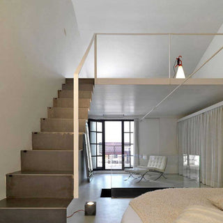 MAY DAY is a design lamp which evokes the old construction site lamps, designed by Konstantin Grcic in 1998 for Flos. A lighting cone which can be hanged or leaned, becoming a floor, a table or a hanging lamp, which has a functional handle, which is useful also to reel in the excess cable. MAY DAY is available on Shop Decor with handle and hook in Orange. A technical design, functional but very elegant, which makes MAY DAY a perfect lamp for every kind of modern space, either private or public.