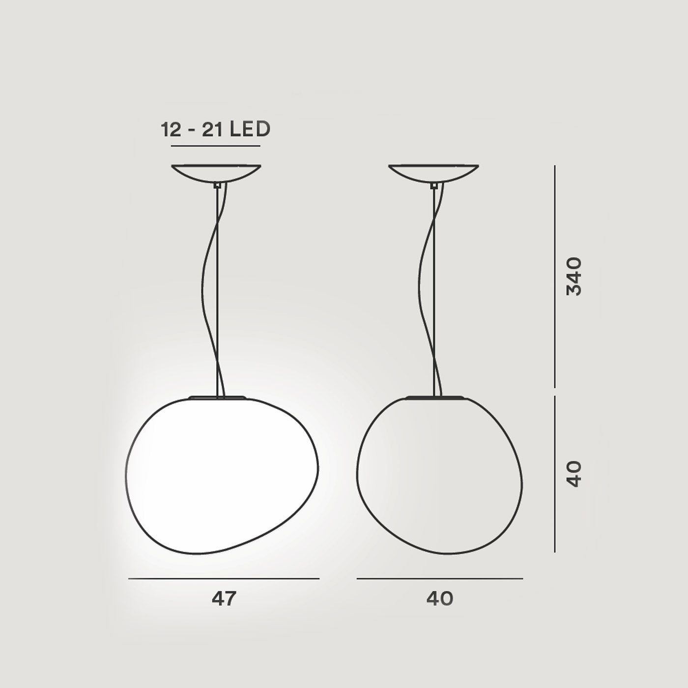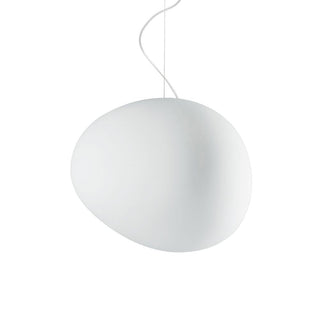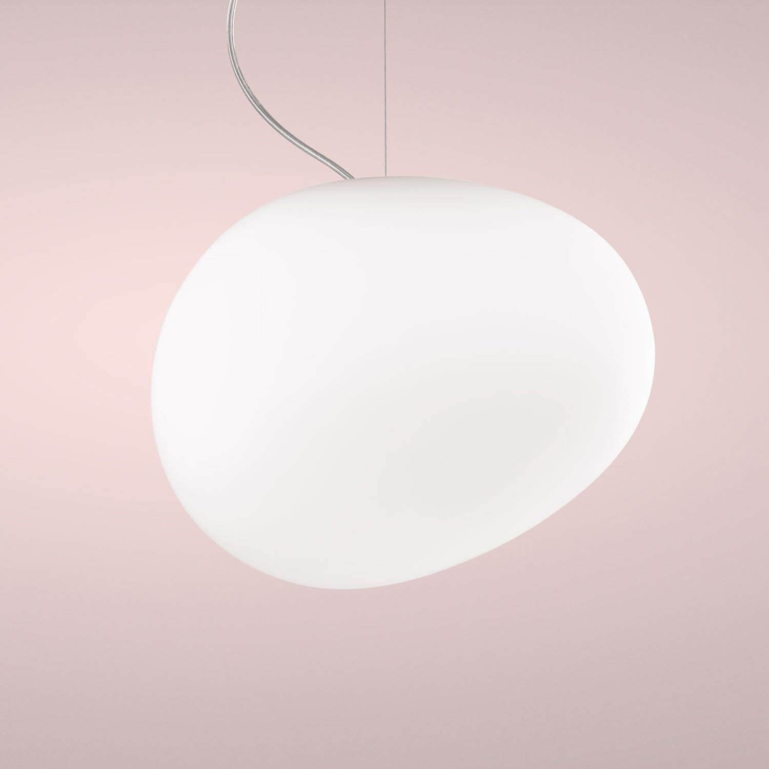 The Gregg collection, designed by Ludovico and Roberto Palomba for Foscarini, consists of a series of mouth blown glass lamps. Gregg LED large suspension lamp is an essential and elegant element and its shape resembles that of a stone. The Gregg lamp is dimmable and emits a uniform light throughout the room, perfect to adapt to the different rooms of the house. The object is available in numerous variations.