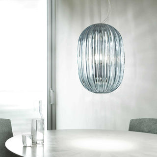 Designed by the Italian designer Luca Nichetto for Foscarini, Plass E27 is a medium suspension lamp that recalls a refined Pearl. Plass is perfect for enriching the living area and providing the environment with a diffused light that comes from the inside of the lamp and breaks on the incisions on the ground glass surface. The lamp is elegant and refined and gives the spaces an impeccable style. Foscarini Plass is present in available variants.