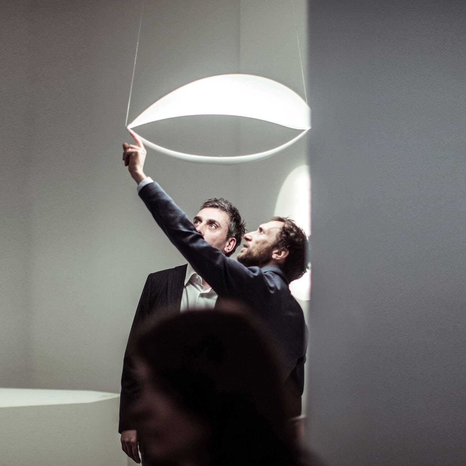 Discover Eugenio Gargioni's lighting designs, like the Plena suspension lamp. Perfect for interiors and versatile lighting solutions.