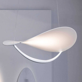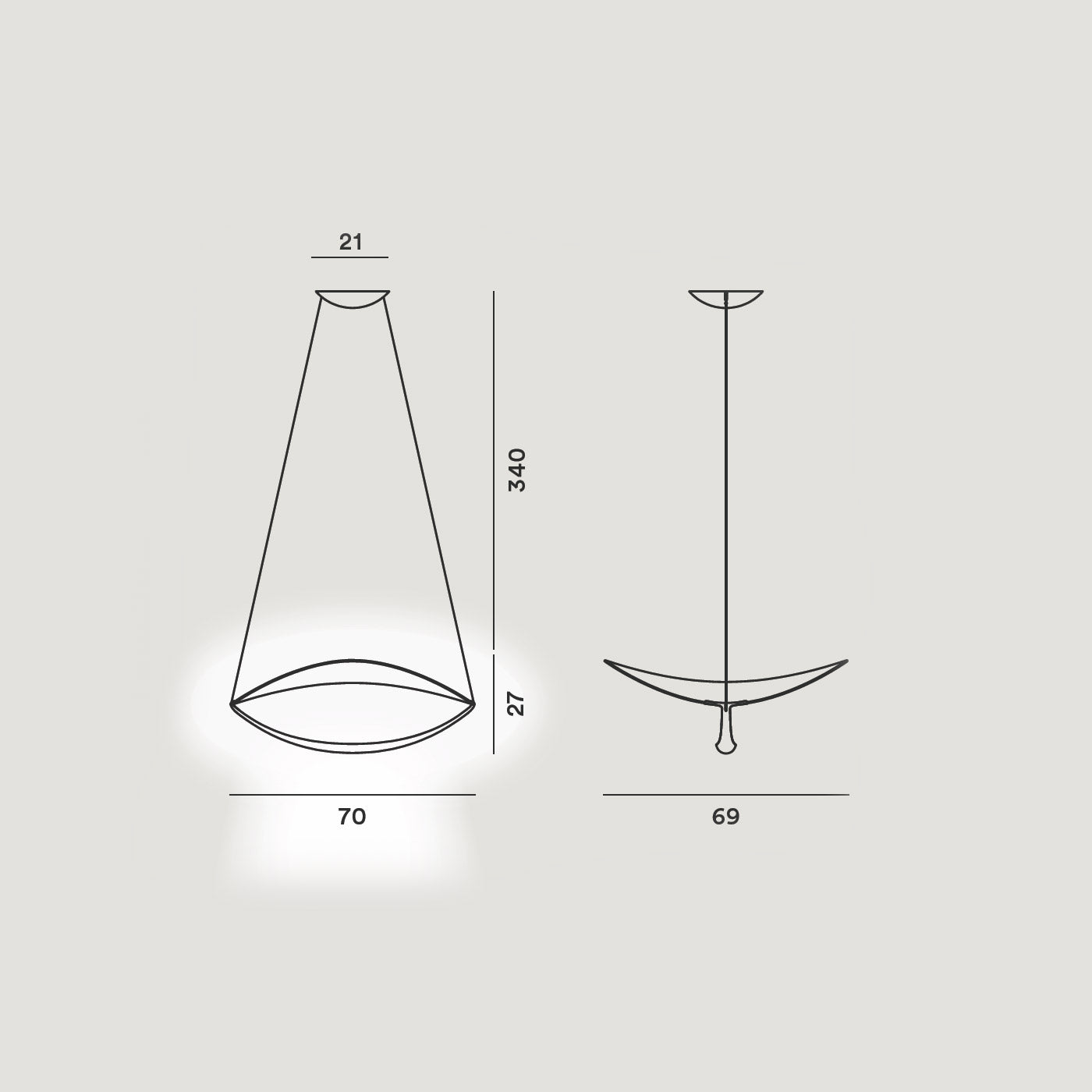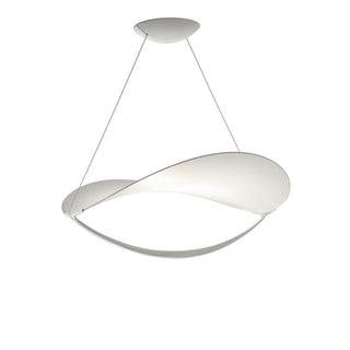 Plena LED, designed by Eugenio Gargioni and Guillaume Albouy for Foscarini, is a suspension lamp with an original and delicate design. Plena is characterized by a flat and large diffuser in white fabric. Despite the impressiveness of the diffuser, Plena lamp has a balanced and light appearance, that gives the spaces a magical atmosphere, also thanks to the diffused light that illuminates the whole environment.