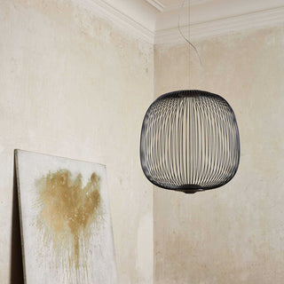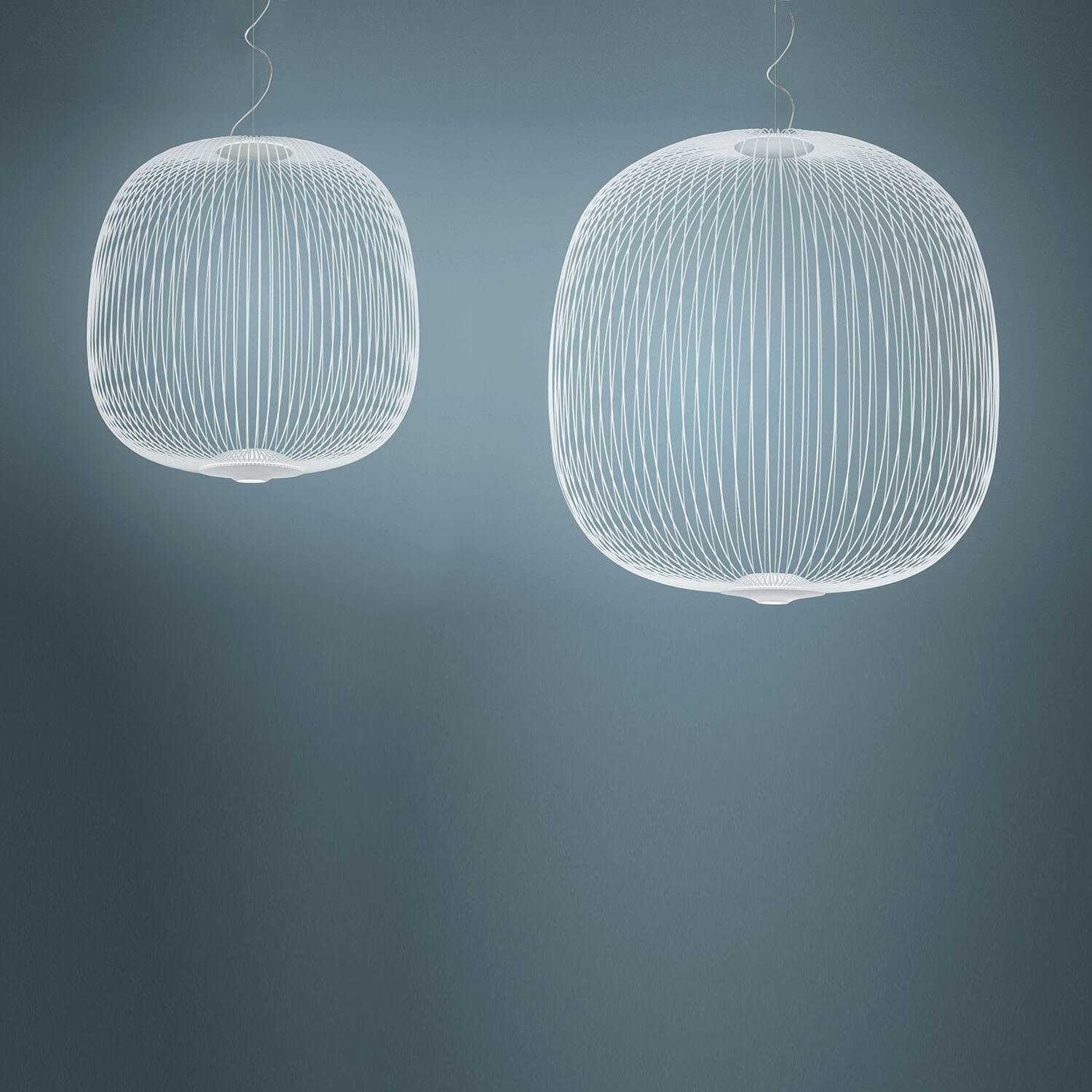 Spokes 2 Large is a suspension lamp, designed by the duo Garcia Cumini for Foscarini and inspired by the ancient Eastern lanterns and the spokes of a bicycle wheel, both recalled in the shape of the object. The Spokes 2 large lamp, in fact, is composed of rays that filter the light and create unique lighting effects throughout the room. Spokes 2 Large is a simple and decorative element proposed in different variations and perfect for medium and large spaces.