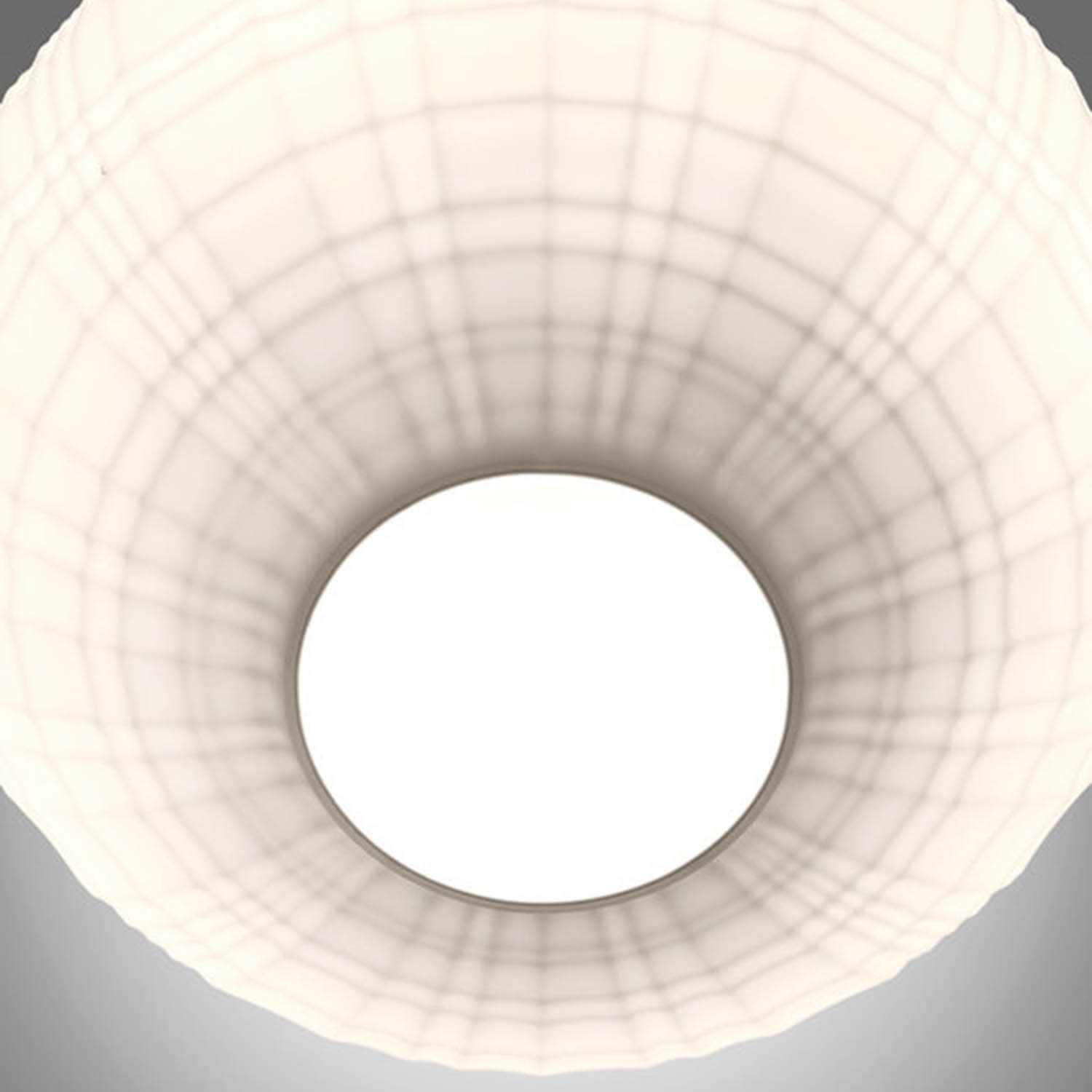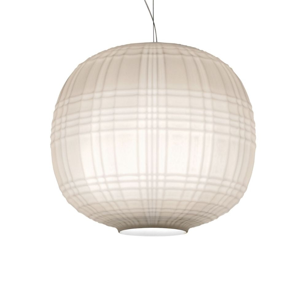 Tartan LED white glass suspension lamp, designed by Ludovica and Roberto Palomba, is a simple and refined blown glass object. Tartan is inspired by the design of the plaid wool, reproduced in the surface of the diffuser, which ensures a soft light towards the below area. Due to its size and design, Tartan adapts to house spaces such as the living room, dining room or bedroom.
