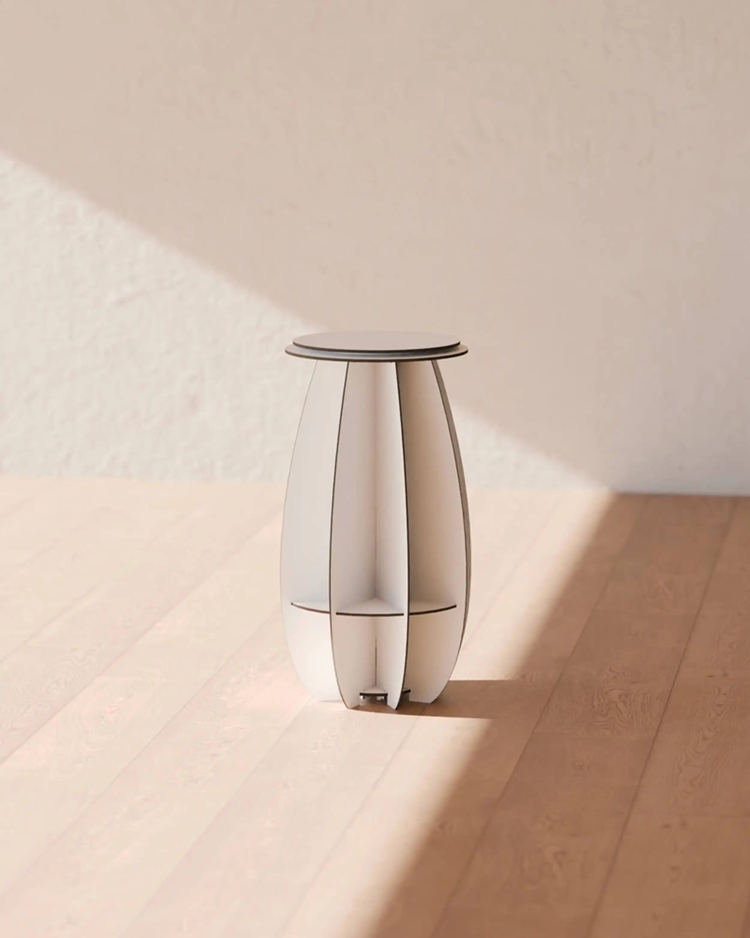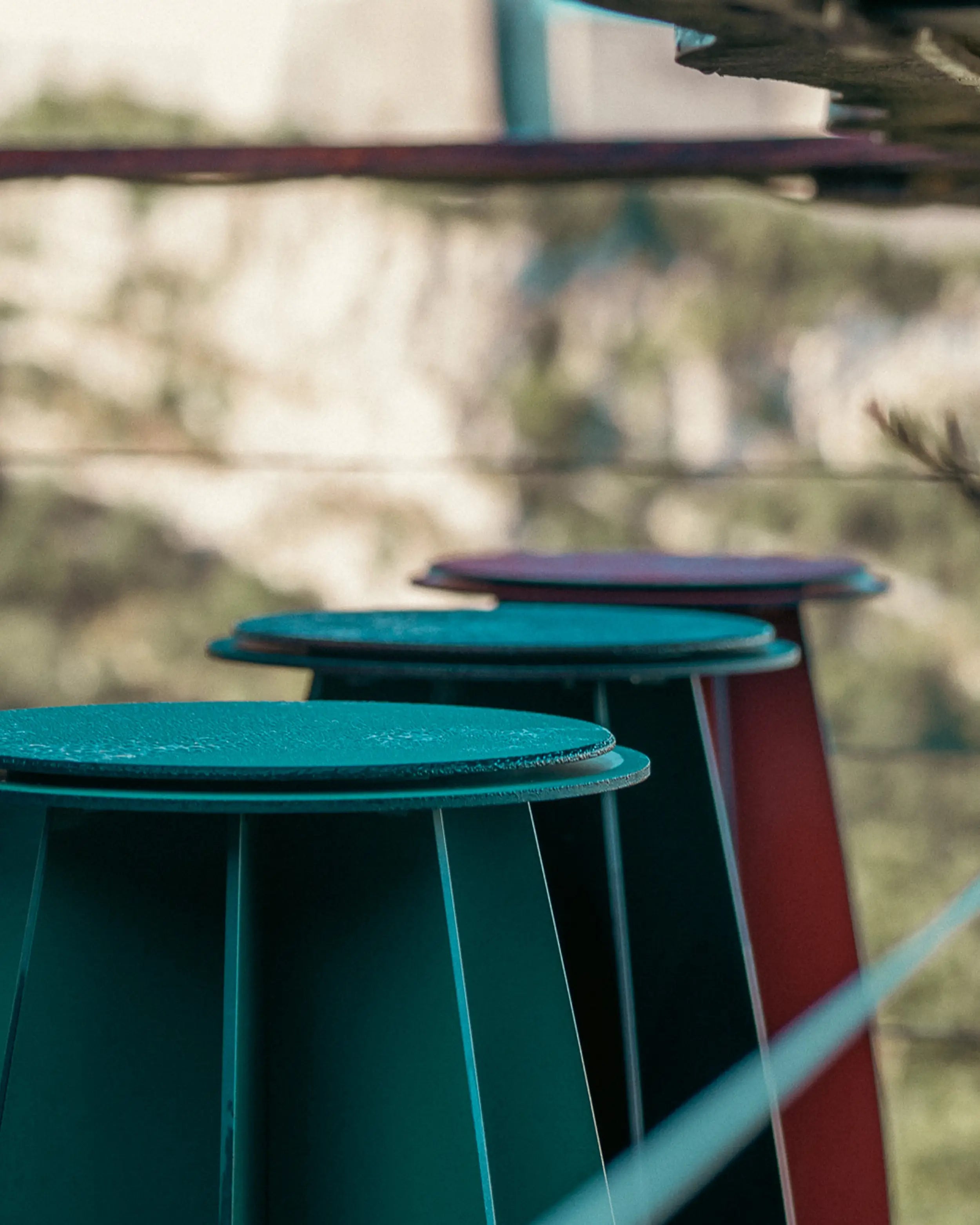 The Gardenia Cholla stool embodies the essence of compact hpl furniture ibride, making it a versatile accent piece that enhances both intimate and open environments. Standing at 34 cm in height, this compact stool by Ibride can be effortlessly moved and repositioned as needed. Its understated yet modern silhouette makes it ideal for use as a casual seat, a decorative accent, or even as a companion piece to a coffee table. It perfectly aligns with the concept of ibride coffee table with stools, creating a cohesive and elegant ensemble.
