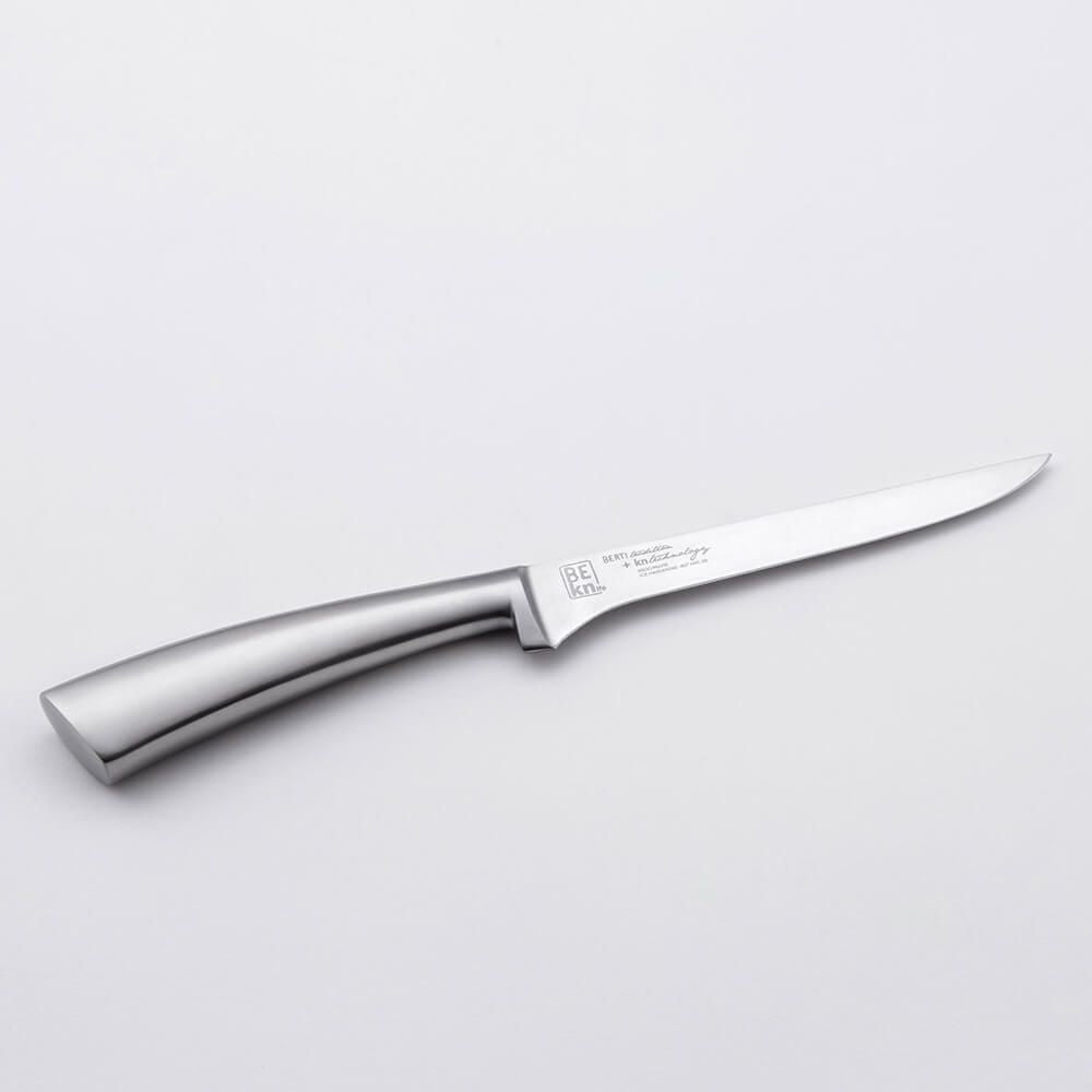 Deboning demands accuracy, control, and a knife that feels like an extension of your hand. The KnIndustrie Be-Knife Boning Knife is crafted for just that. Designed by Andrea Berti, this specialized blade is shaped to navigate joints, trim fat, and separate meat from bone with surgical precision. A refined essential in any Knives & Co collection.